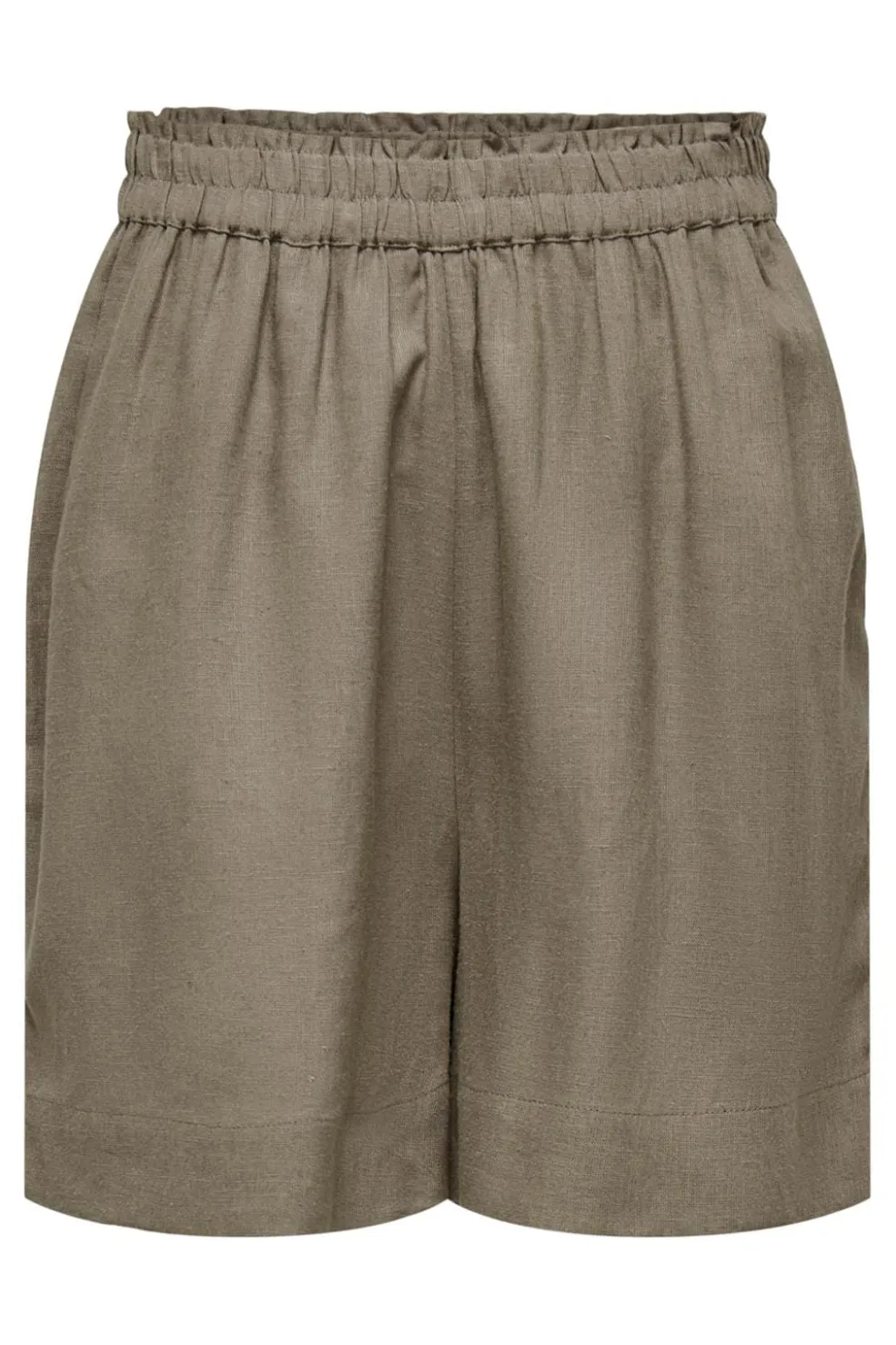 Shorts fra Only i khakigrøn. Lavet af en blanding af viscose og hør med en afslappet pasform og elastisk talje med flæsekant.