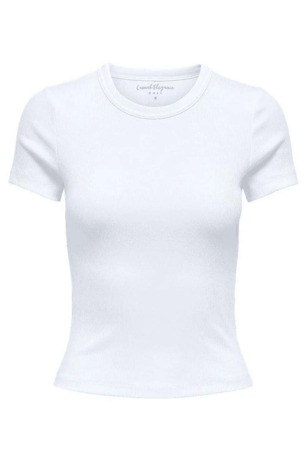 Hvid t-shirt fra Only med rund halsudskæring og korte ærmer. En basic top i økologisk bomuld med en regular fit, der gør den praktisk til både hverdag og hjemmebrug.