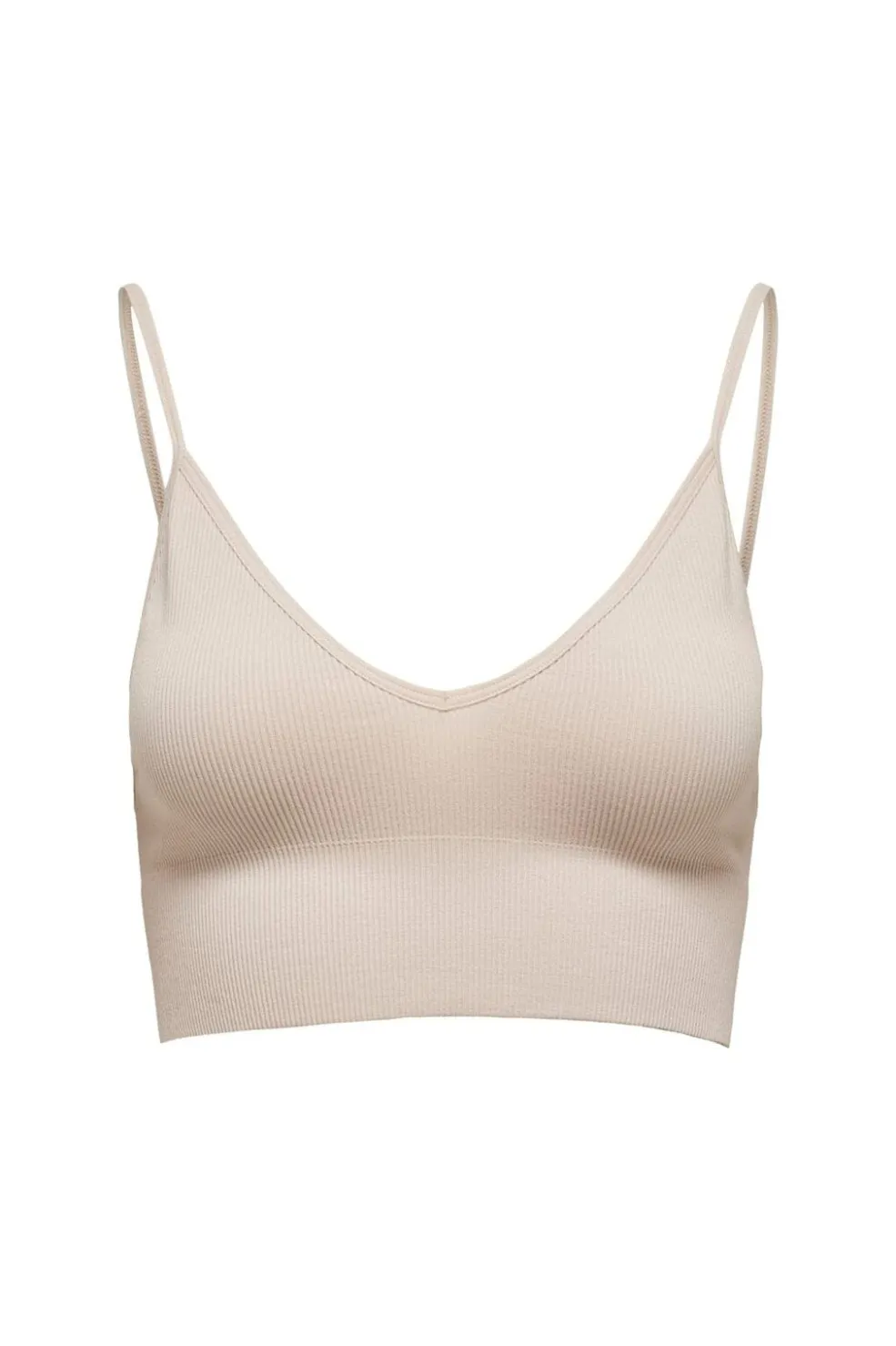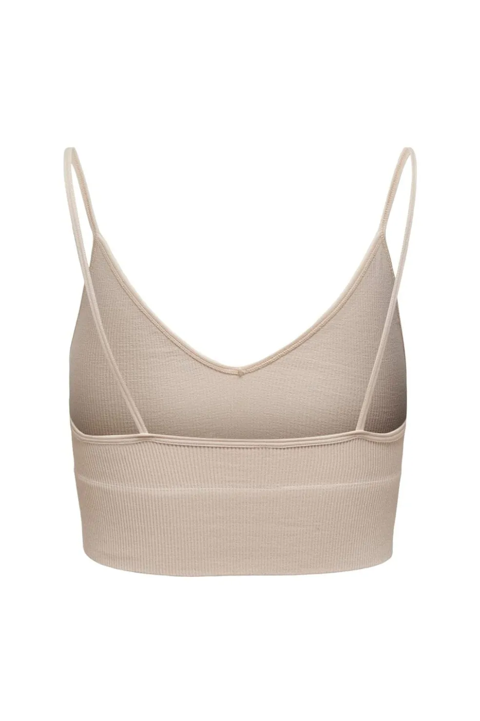 Ribstrikket top fra Only i ferskenfarvede nuancer. Toppen har en tætsiddende pasform med V-hals og tynde stropper. Den ribbede tekstur giver et praktisk og behageligt design.