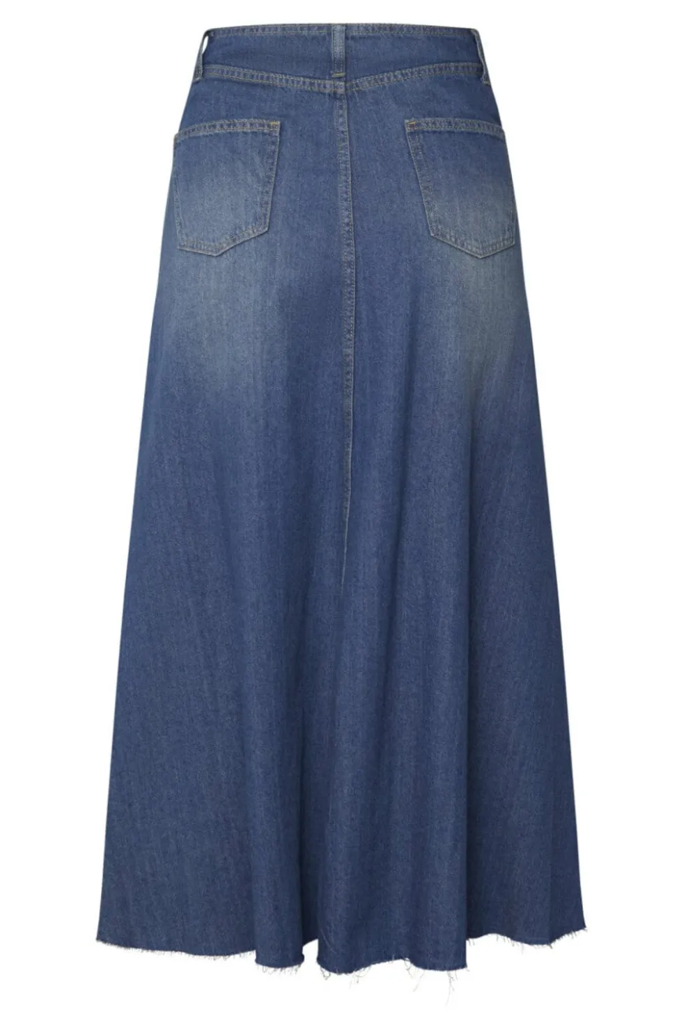 Lang denimnederdel fra Sisters Point i vintage wash. A-formet silhuet med fem knapper foran og praktiske lommer giver nederdelen et afslappet udtryk.