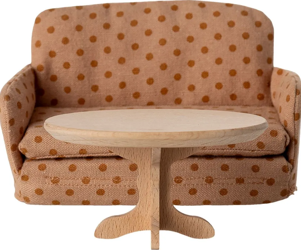 Bordet passer til sovesofaen i musestørrelse og kan bruges i SuitCasa til te- eller kaffesammenkomster i miniatureopsætninger med Maileg-mus.