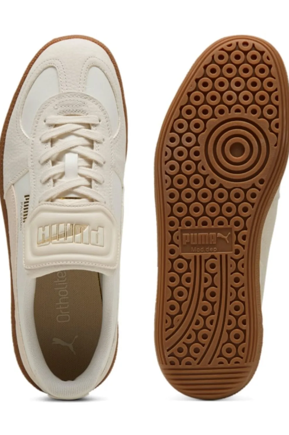 Hvid sneaker fra Puma med klassisk design. Kombinationen af læder og gummisål giver en robust sneaker med sporty detaljer og en cremefarvet finish.