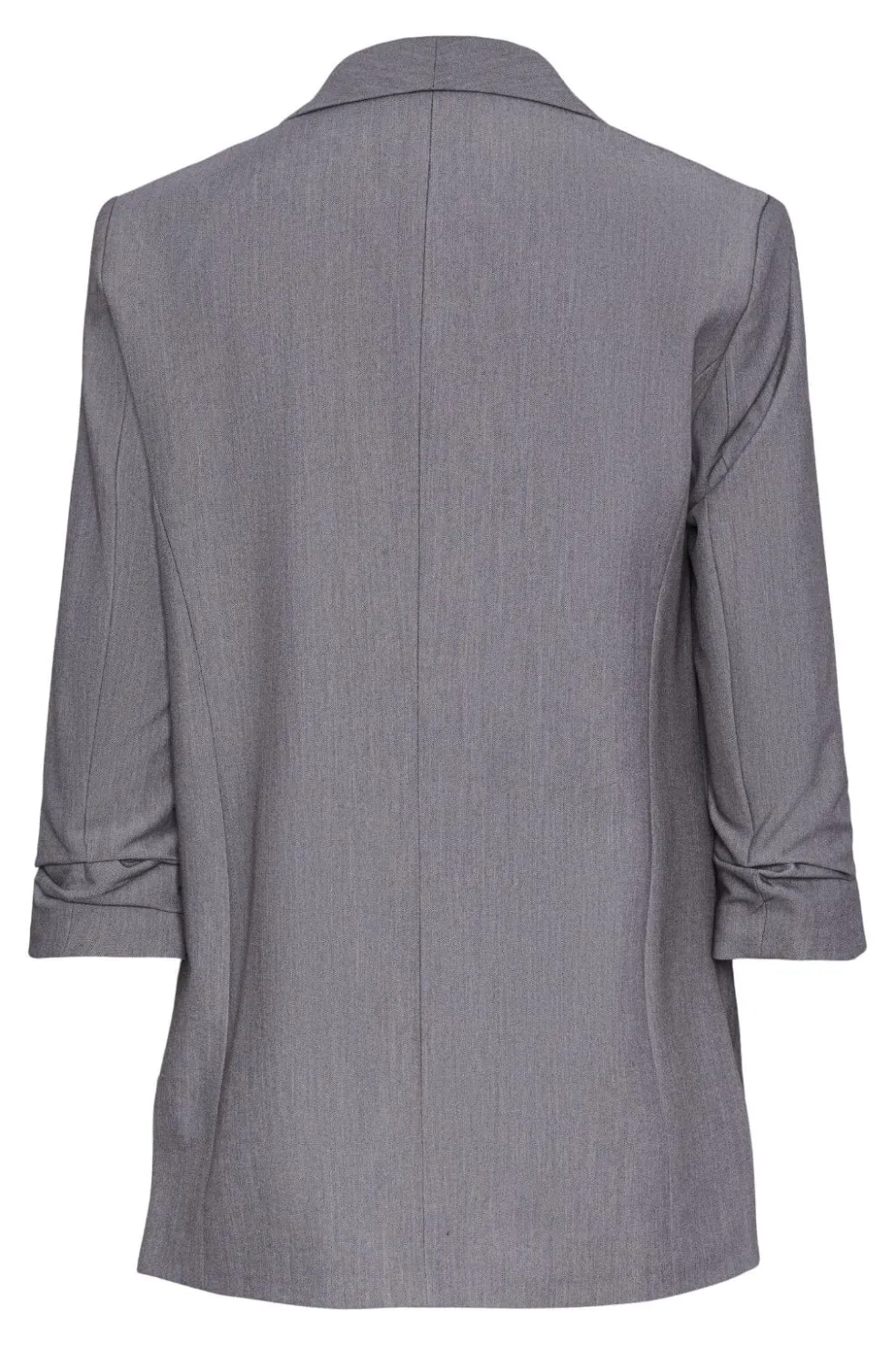 Lys grå blazer fra Pieces med revers og 3/4 ærmer. Den melerede blazer har en regular fit og kan bruges til både hverdag og fest.