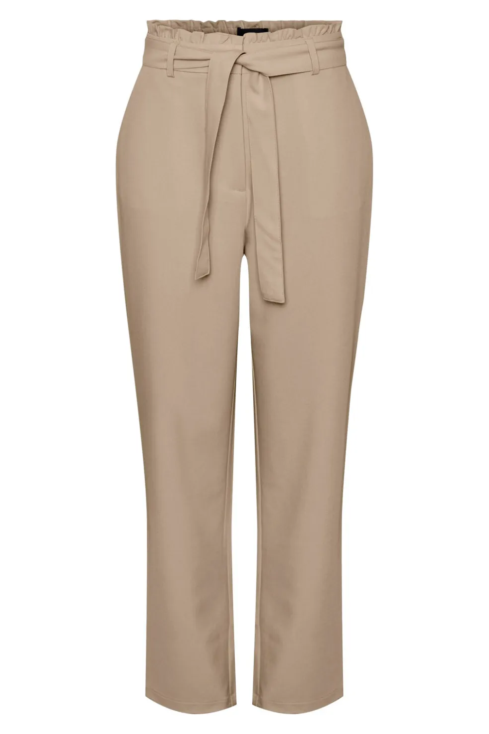 Lige bukser fra Pieces i en lys beige nuance. Bukserne har høj talje med paperbag-design og et bindebånd i taljen, der giver mulighed for at tilpasse pasformen.
