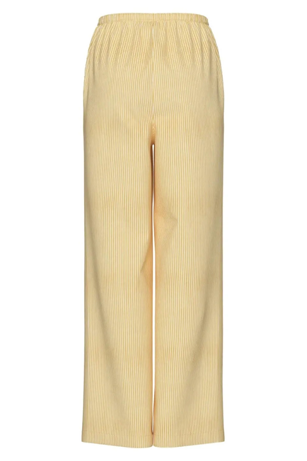 Stribede bukser fra Pieces i en lys gul nuance. Bukserne har en høj talje med bindebånd og en løs pasform med lige ben.
