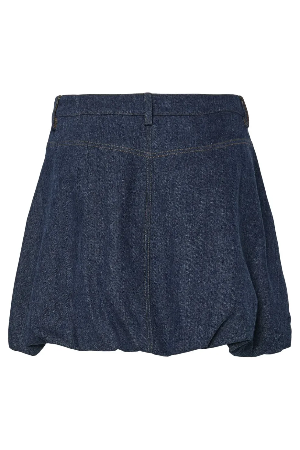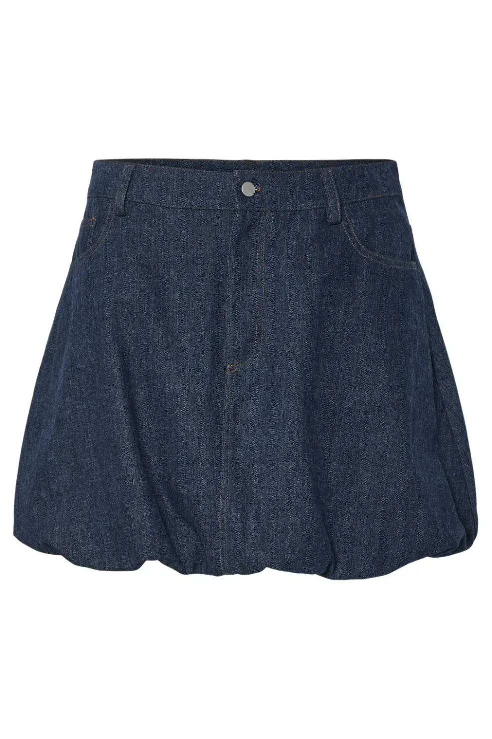Kort denimnederdel fra Pieces i mørkeblå denim. Nederdelen har en karakteristisk ballonform med en lårkort længde og regulær pasform.