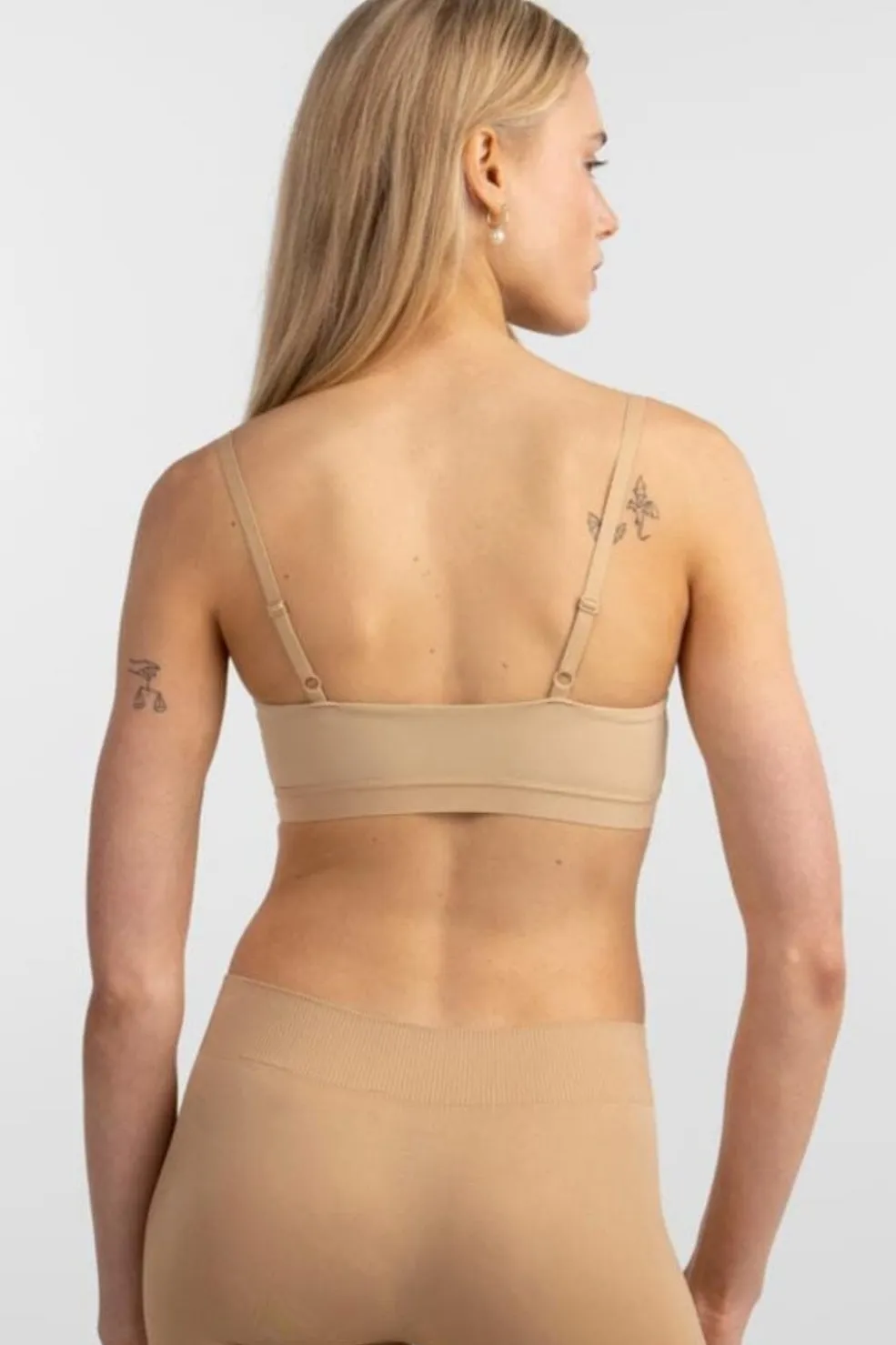 BH fra Pieces i en neutral nude farve med sømløst design. Den tynde jersey former sig efter kroppen og giver en glat silhuet under tøjet.