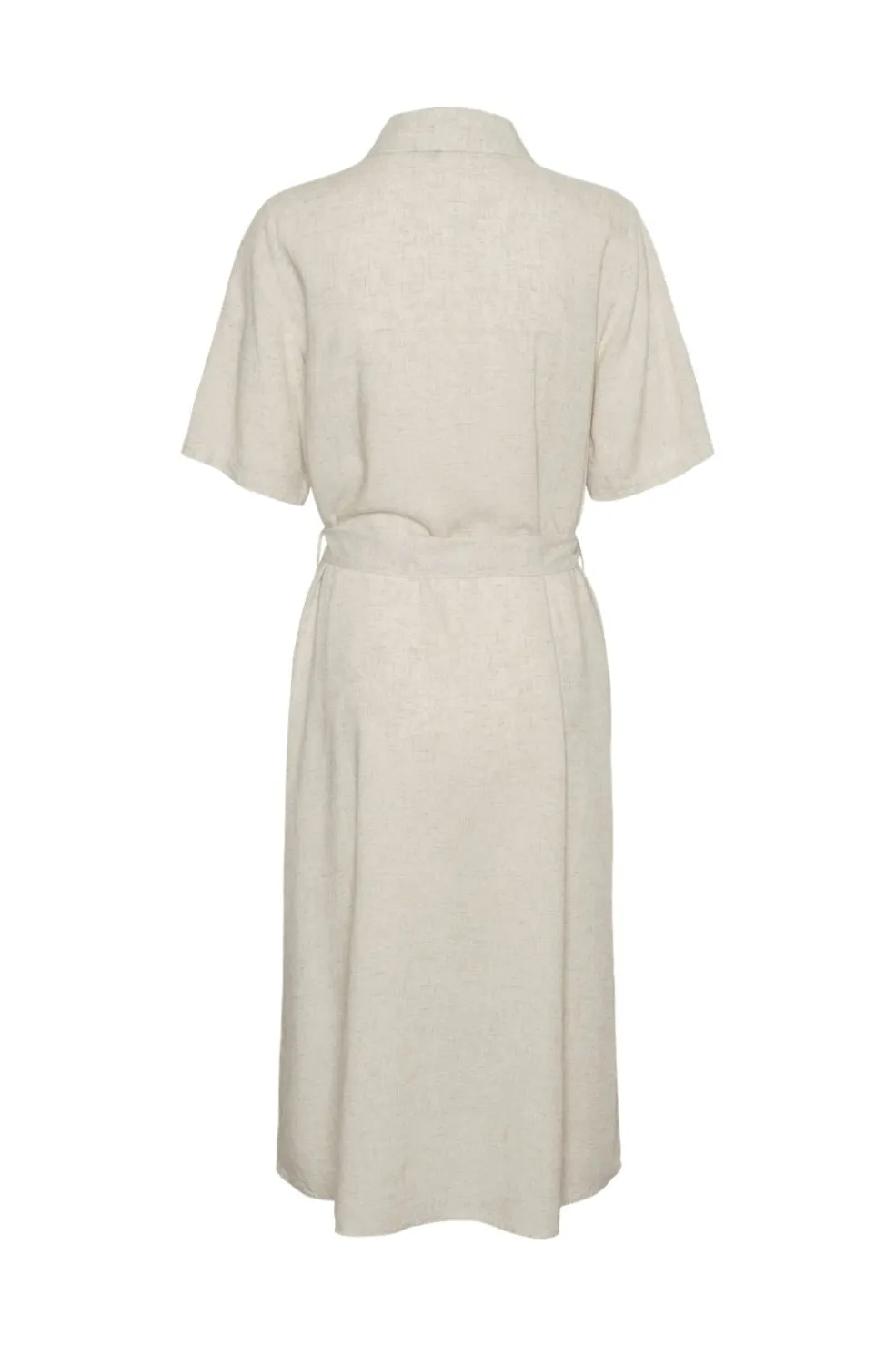 Skjortekjole fra Pieces i lys beige. Kjolen har knaplukning foran, skjortekrave og korte ærmer. Et bindebånd i taljen giver mulighed for at tilpasse pasformen.
