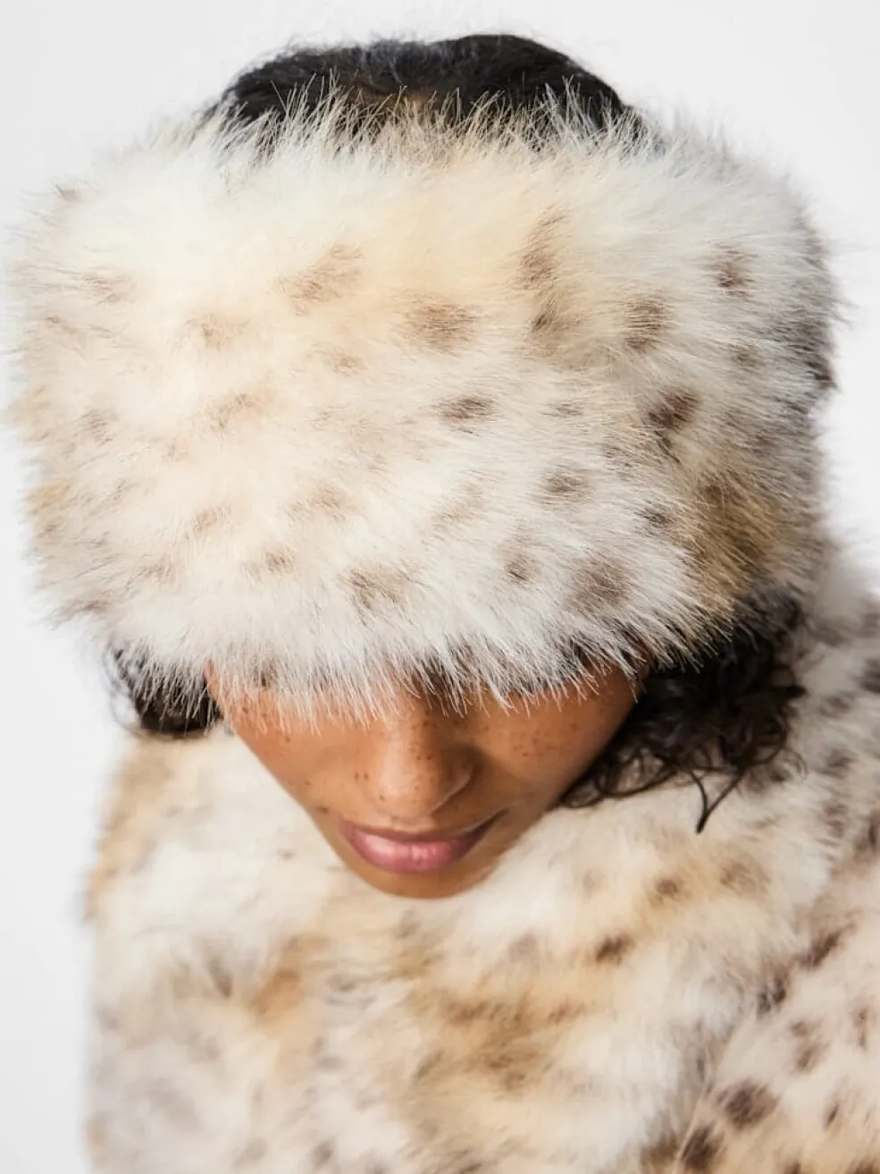 Fluffy hovedbånd fra Pieces med leopardmønster på en lys baggrund. Hovedbåndet har mørke pletter og en blød tekstur.