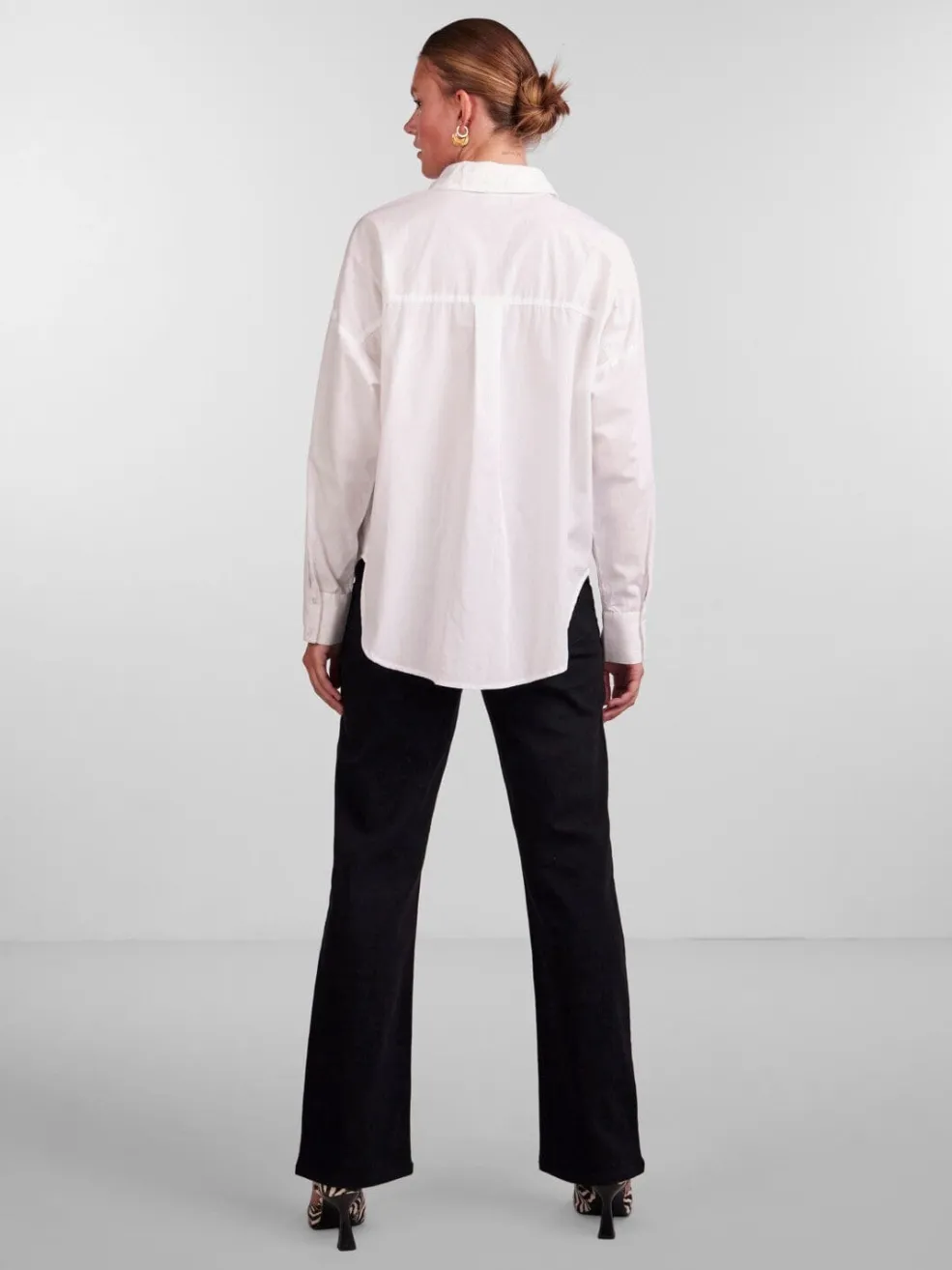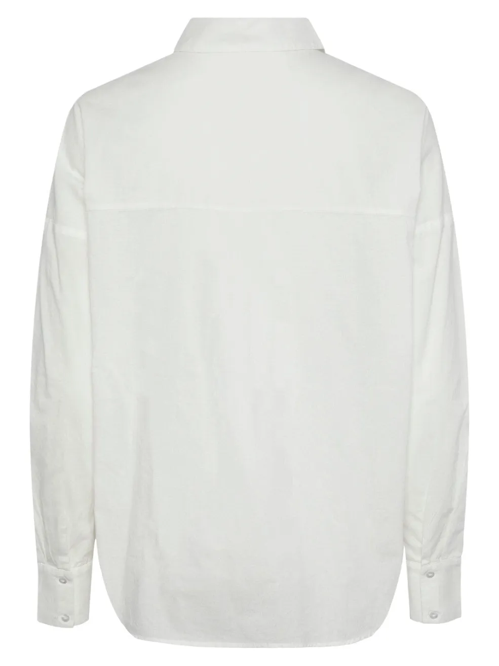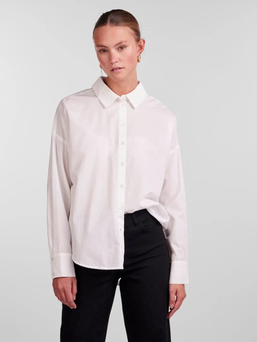 Hvid skjorte fra Pieces med løs pasform. Skjorten har klassisk krave, knapper foran og lange ærmer med manchetter. Den hvide farve og det enkle design gør den nem at style.