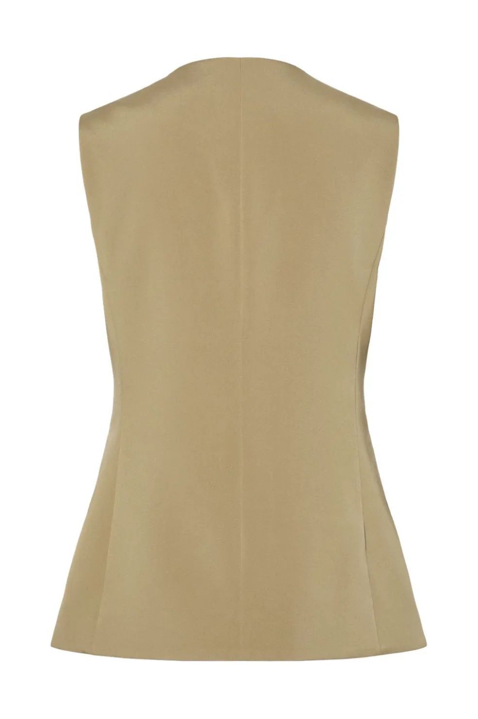 Lang vest fra Pieces i en lys beige nuance. Vesten har et figursyet snit med knaplukning foran og praktiske forlommer. Den kan styles til både hverdags- og kontorbrug.