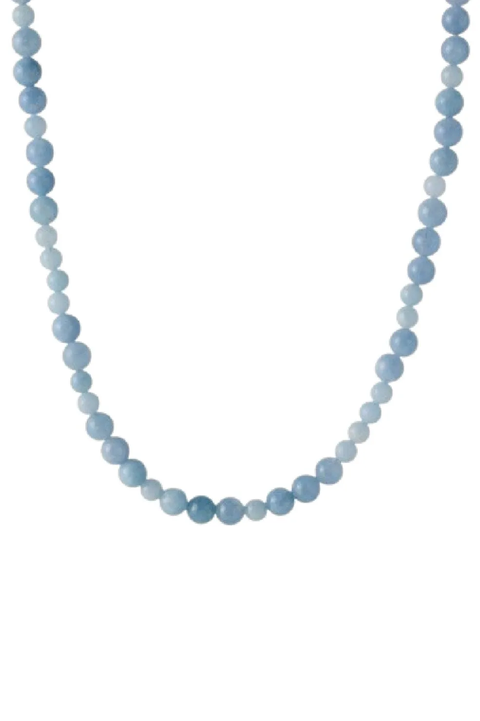 Forgyldt halskæde fra Pernille Corydon med blå aquamarine-sten i forskellige nuancer. Smykket er fremstillet af genbrugssølv med guldbelægning og har en række runde perler.