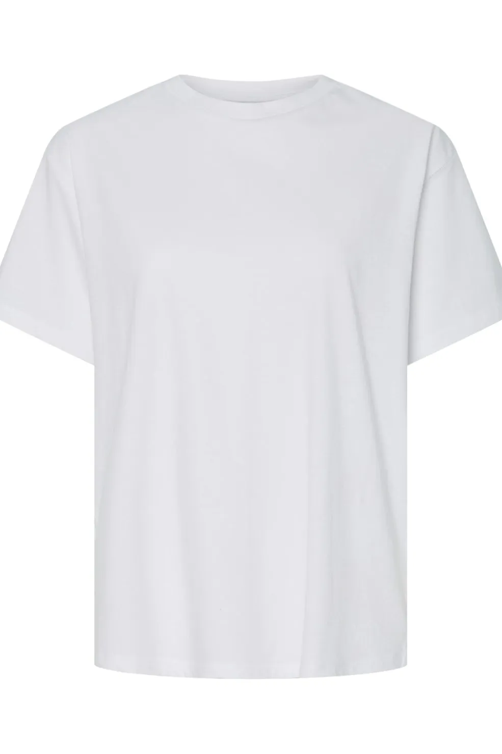 Hvid t-shirt fra Pieces med løs pasform og rund halsudskæring. T-shirten har korte ærmer og er fremstillet i økologisk bomuld med en behagelig kvalitet.
