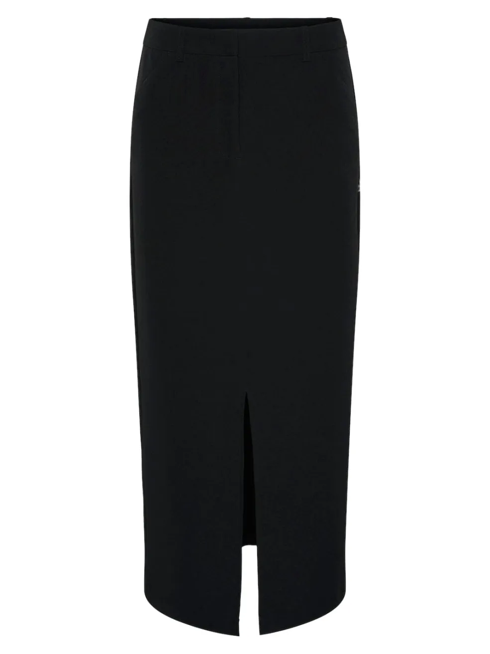 Sort ankelnederdel fra Pieces med høj talje og frontslids. Nederdelen har en regular fit og kan styles til både hverdag og fest.