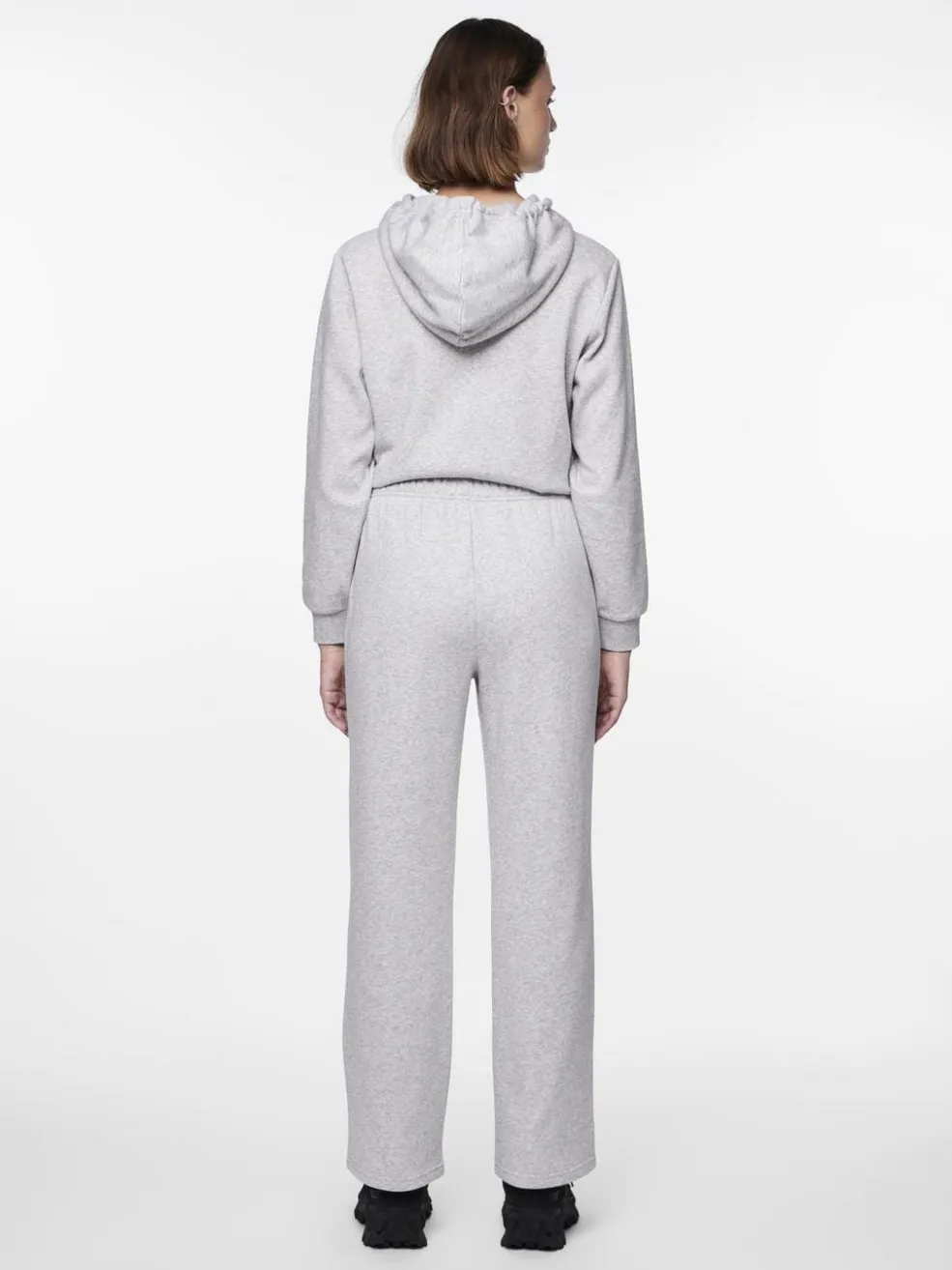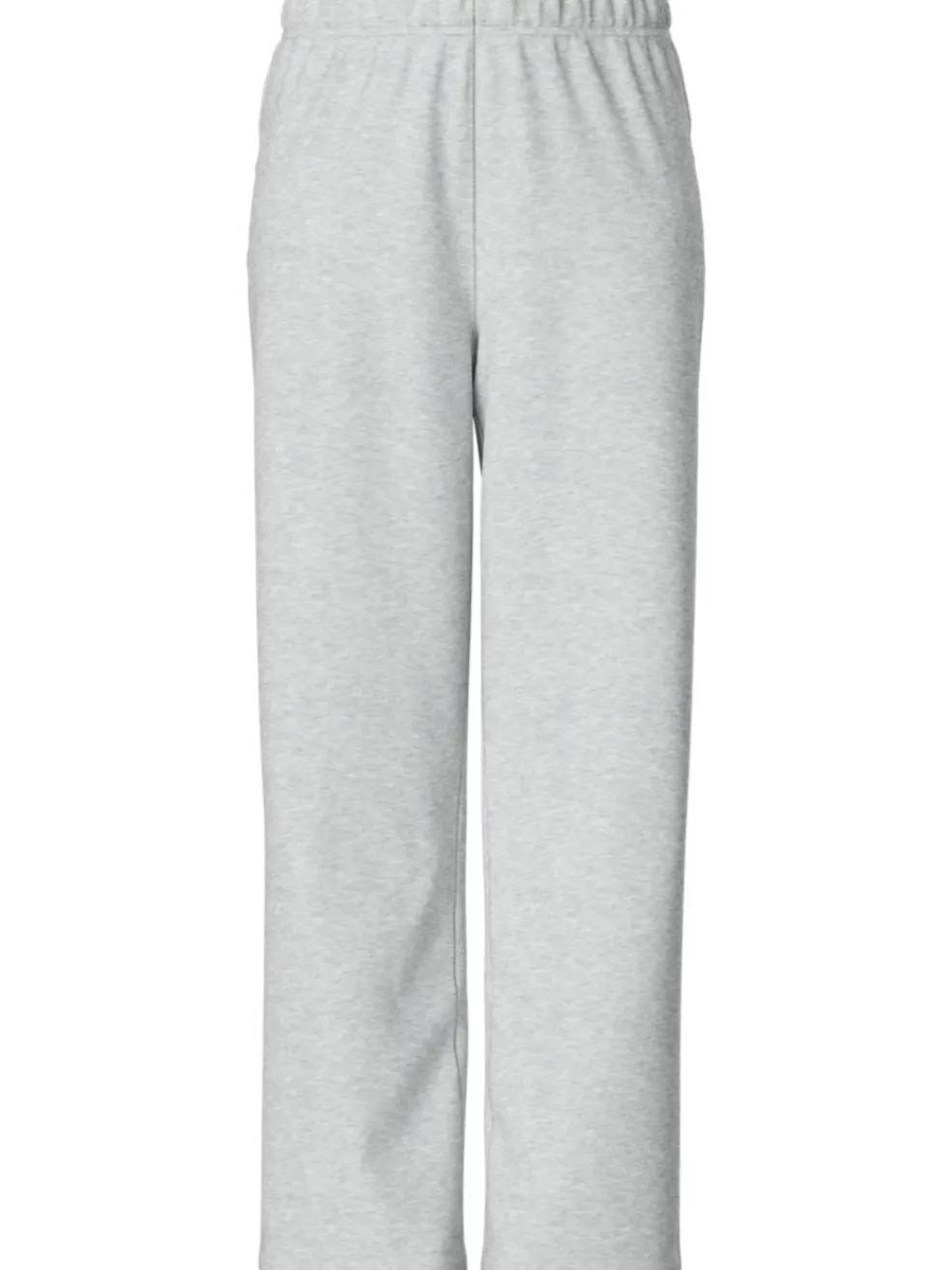 Lys grå sweatpants fra Pieces med en bred pasform. Bukserne har en elastisk talje og ankellængde. De er lavet i en blød, meleret kvalitet.