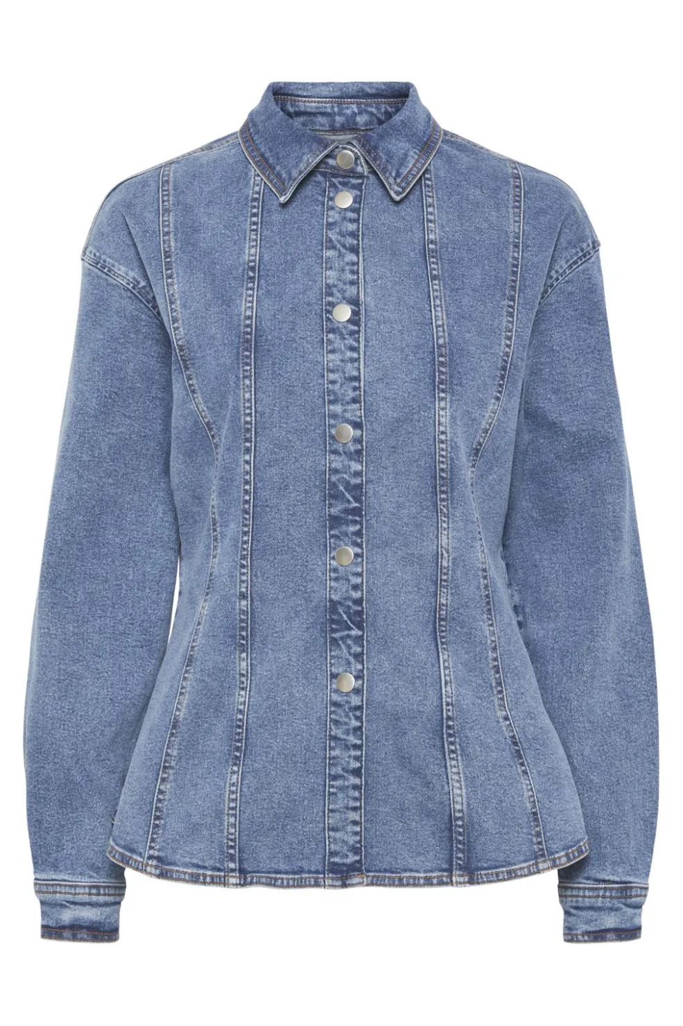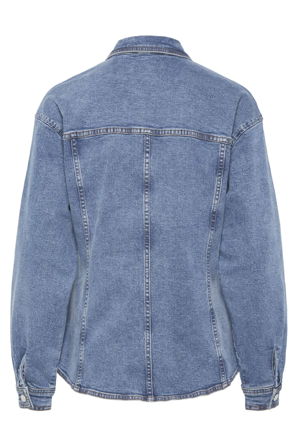 Denimskjorte fra Pieces i medium blå denim med loose fit. Skjorten har klassisk krave, lange ærmer med manchetter og knaplukning foran.