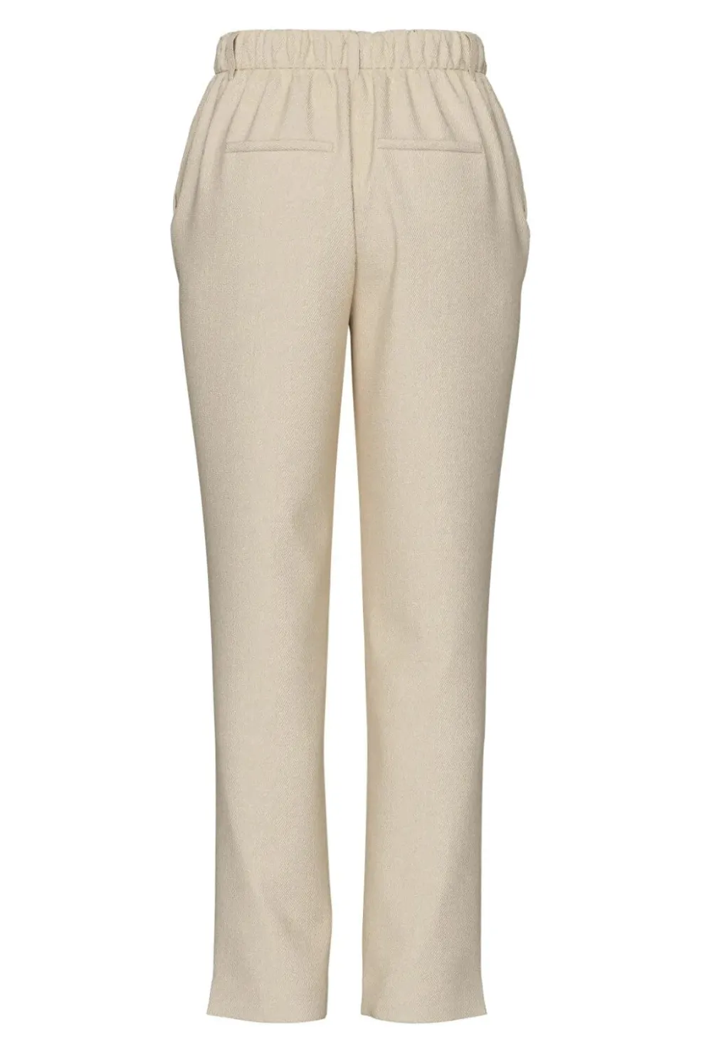 Ankelbukser fra Pieces i sandfarvet nuance med bred benvidde. Bukserne har en løs pasform og elastisk talje, der giver god bevægelighed i løbet af dagen.