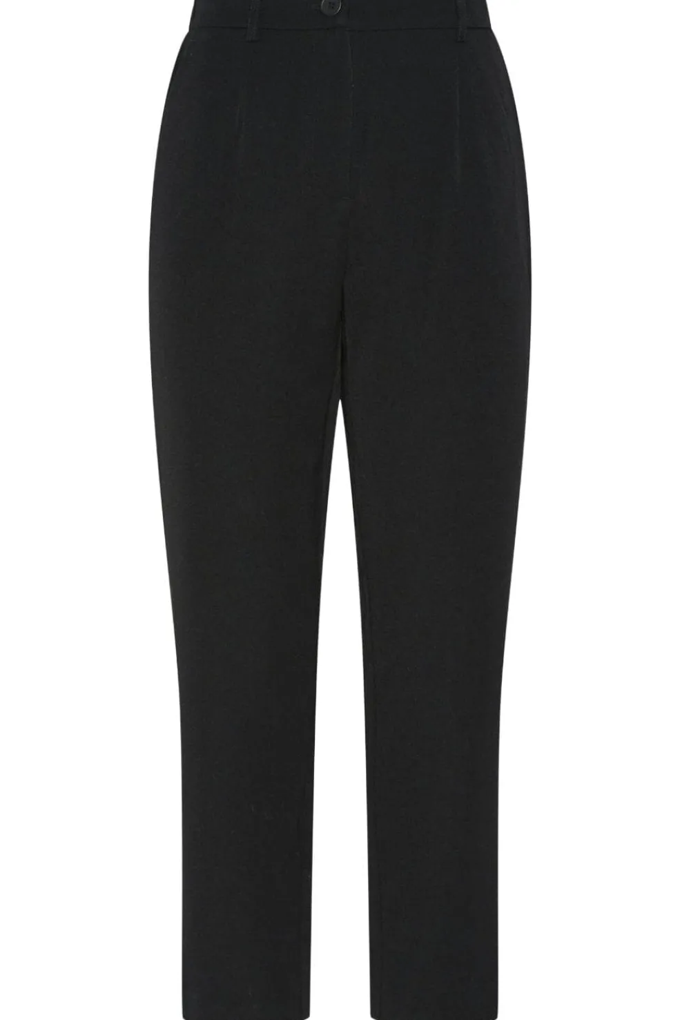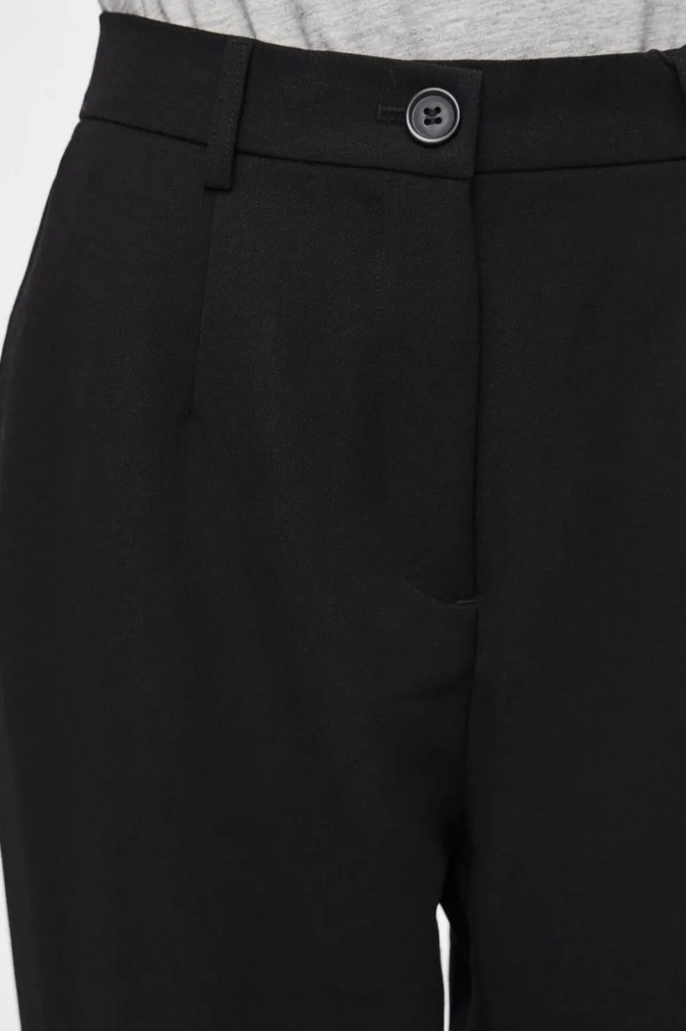 Sorte ankelbukser fra Pieces med wide leg og loose fit. Bukserne har en almindelig taljehøjde med både knapper, lynlås og elastik i taljen.