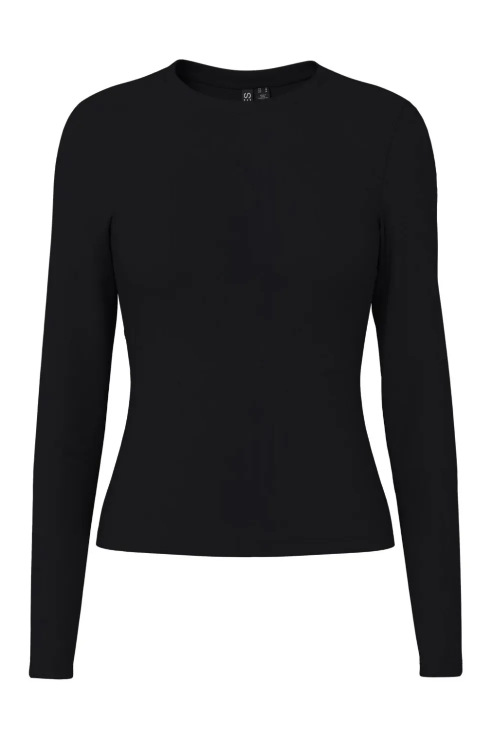 Sort top fra Pieces med lange ærmer og slim fit-pasform. Toppen har en rund halsudskæring og er lavet af nylon med elastan.
