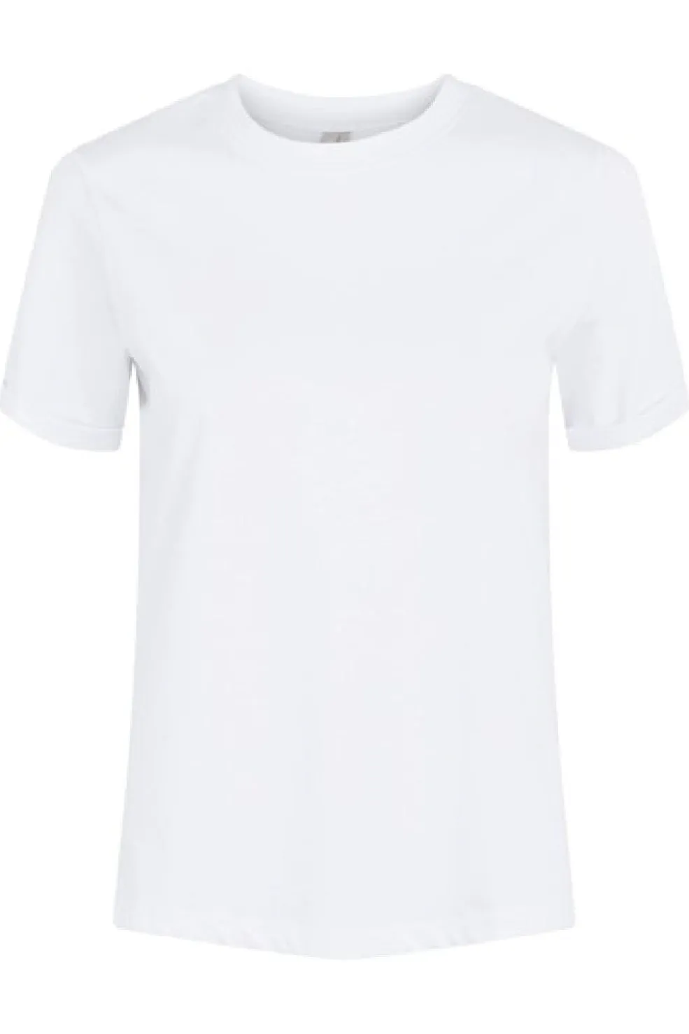 Hvid t-shirt fra Pieces med rund halsudskæring og opsmøg på ærmerne. En t-shirt i ren bomuld med korte ærmer og et enkelt design.