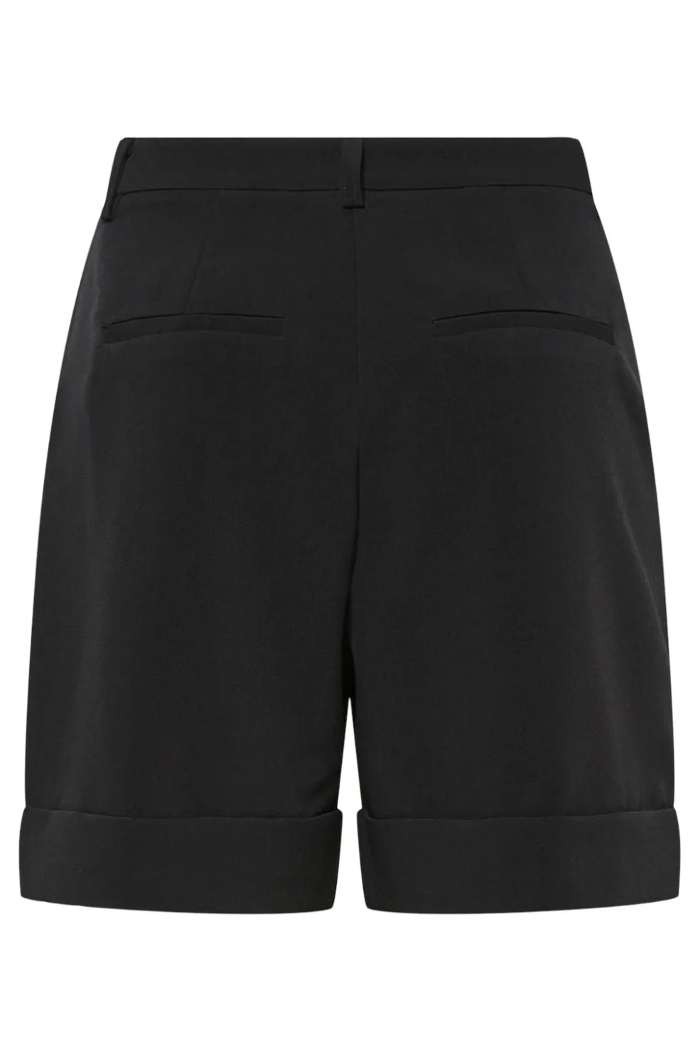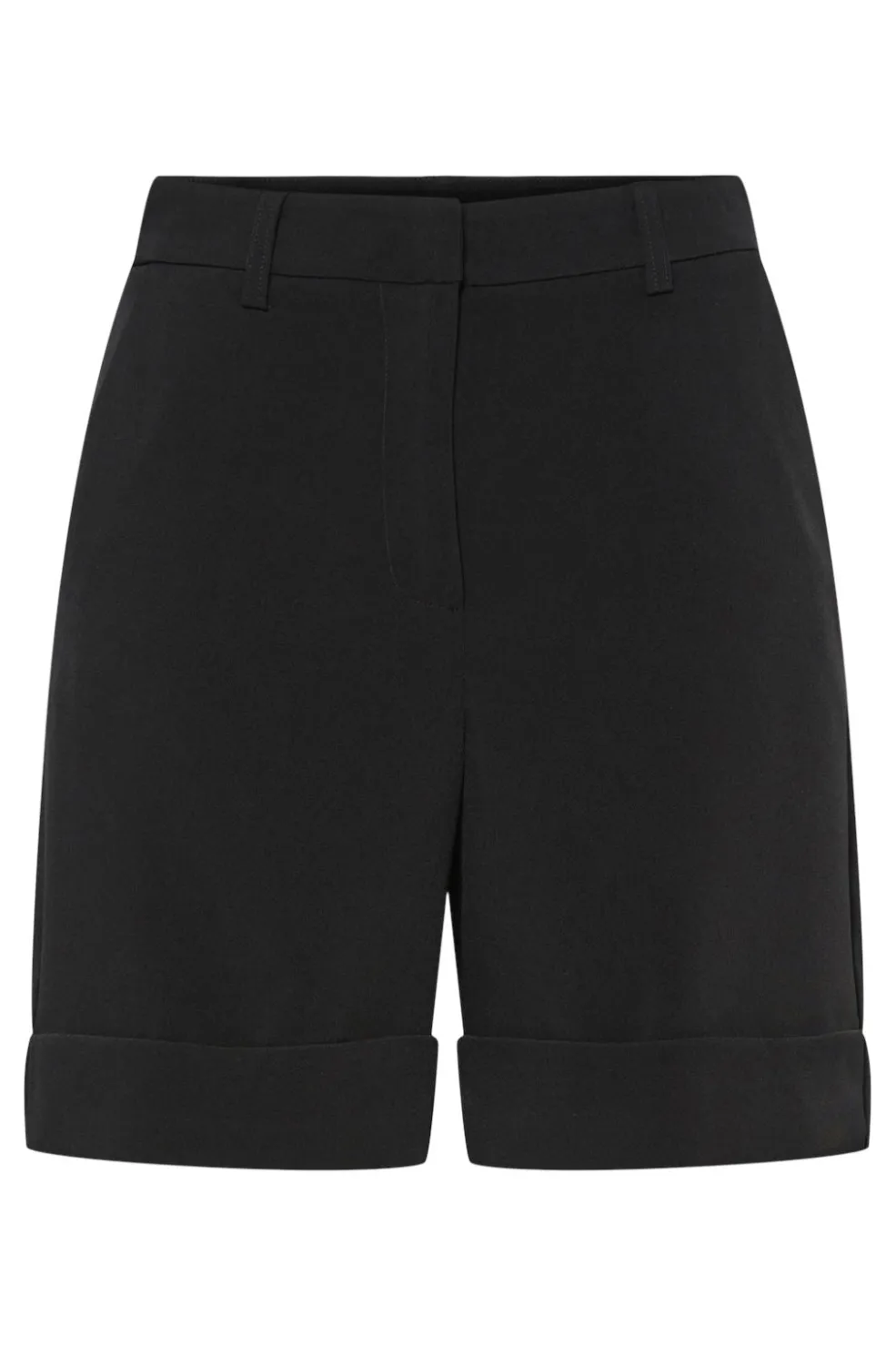 Sorte shorts fra Pieces med bæltestropper og rullede kanter. Shortsene har en regular fit-pasform og er fremstillet i et vævet materiale med lynlås- og knaplukning.