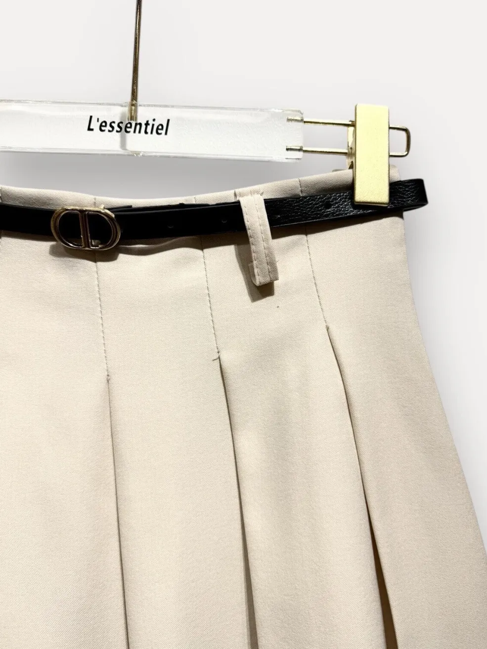 Beige plisseret nederdel fra A-bee med trapezform. Nederdelen har et feminint udtryk og kan bruges til forskellige anledninger.