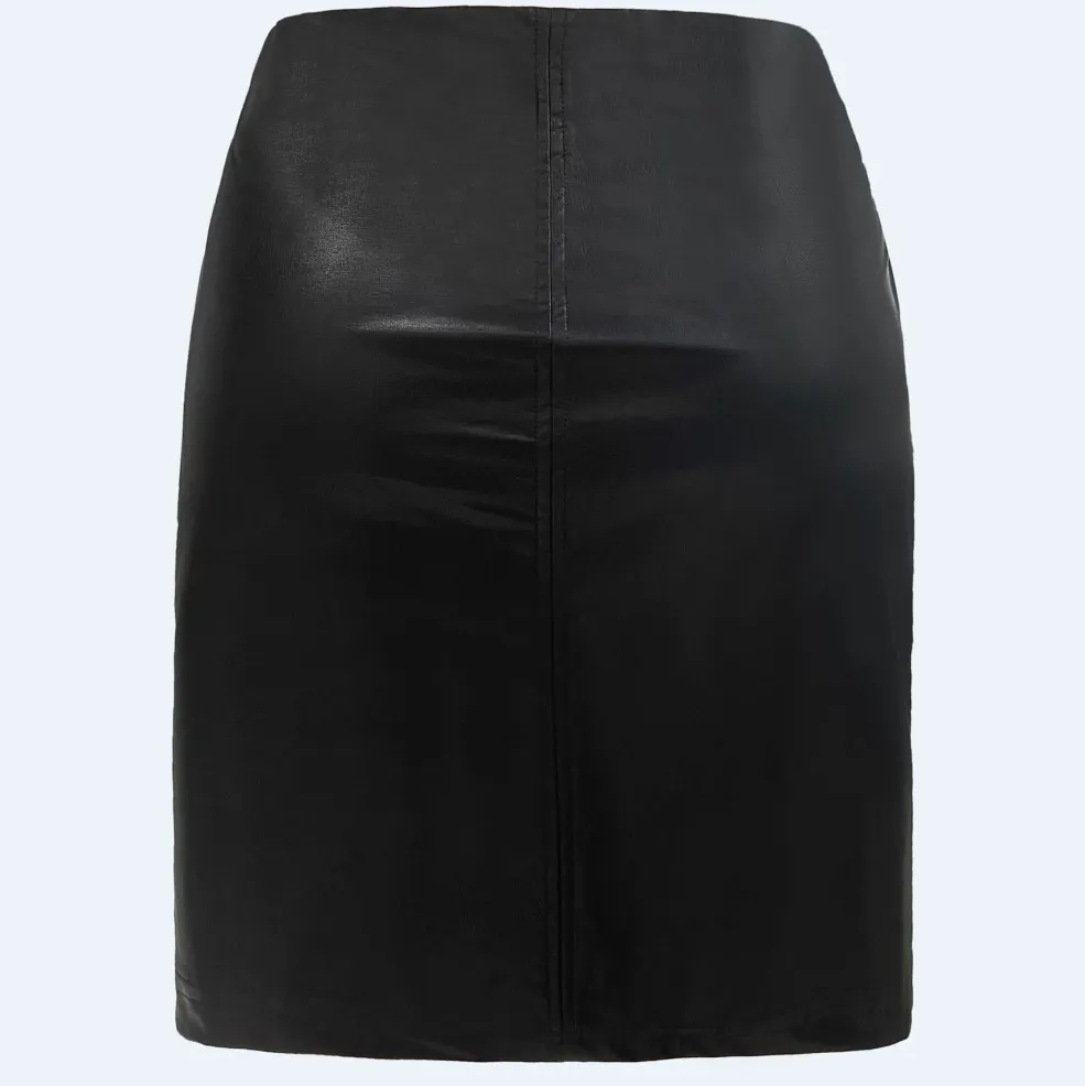 Sort mini-nederdel fra Liberte med skinnende finish. Nederdelen har vertikale syninger på for- og bagsiden.