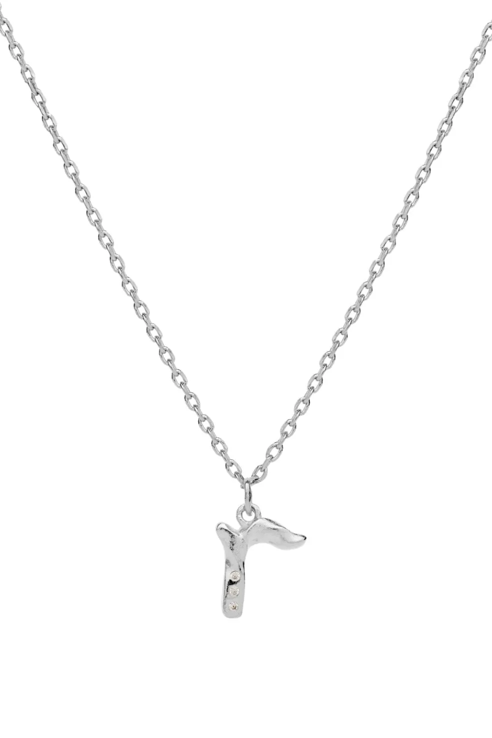 Sølvhalskæde fra Maanesten med R-bogstavvedhæng. Halskæden er fremstillet af genanvendt sterlingsølv med små skinnende detaljer i vedhænget.