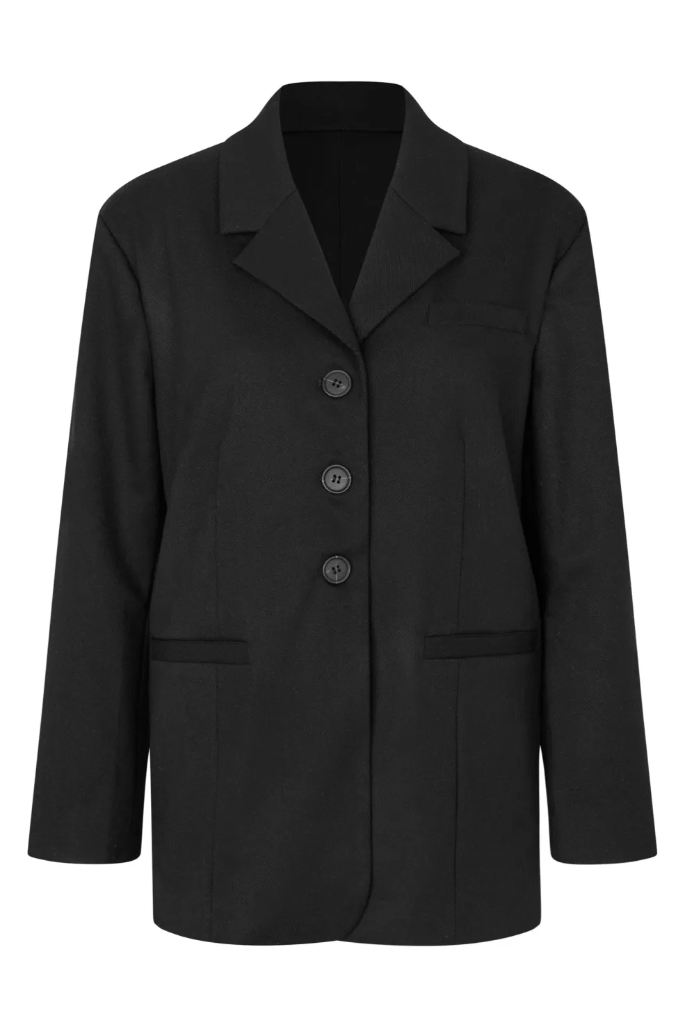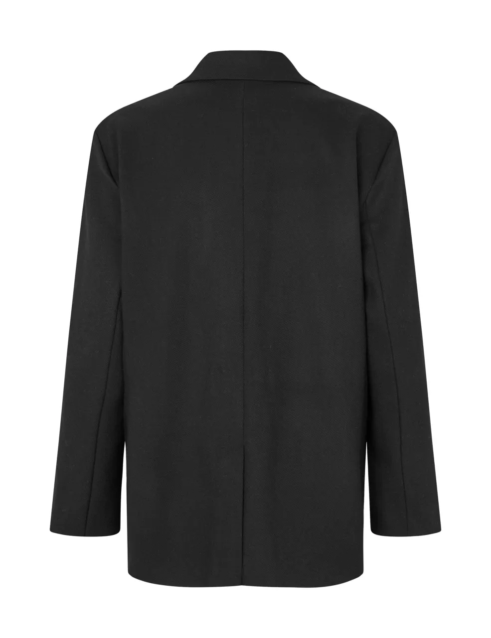 Sort blazer fra MbyM med klassisk design. Blazeren har fire knapper foran, to lommer og en traditionel krave med revers.