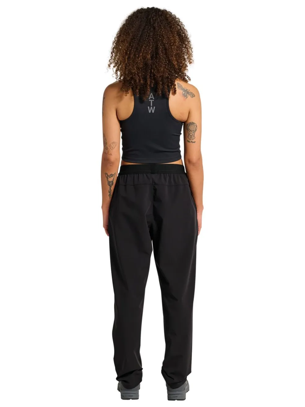Sorte afslappede bukser fra Halo. Bukserne er lavet af 85% polyamid og 15% elastan med 4-vejs stræk. De har en løs pasform.