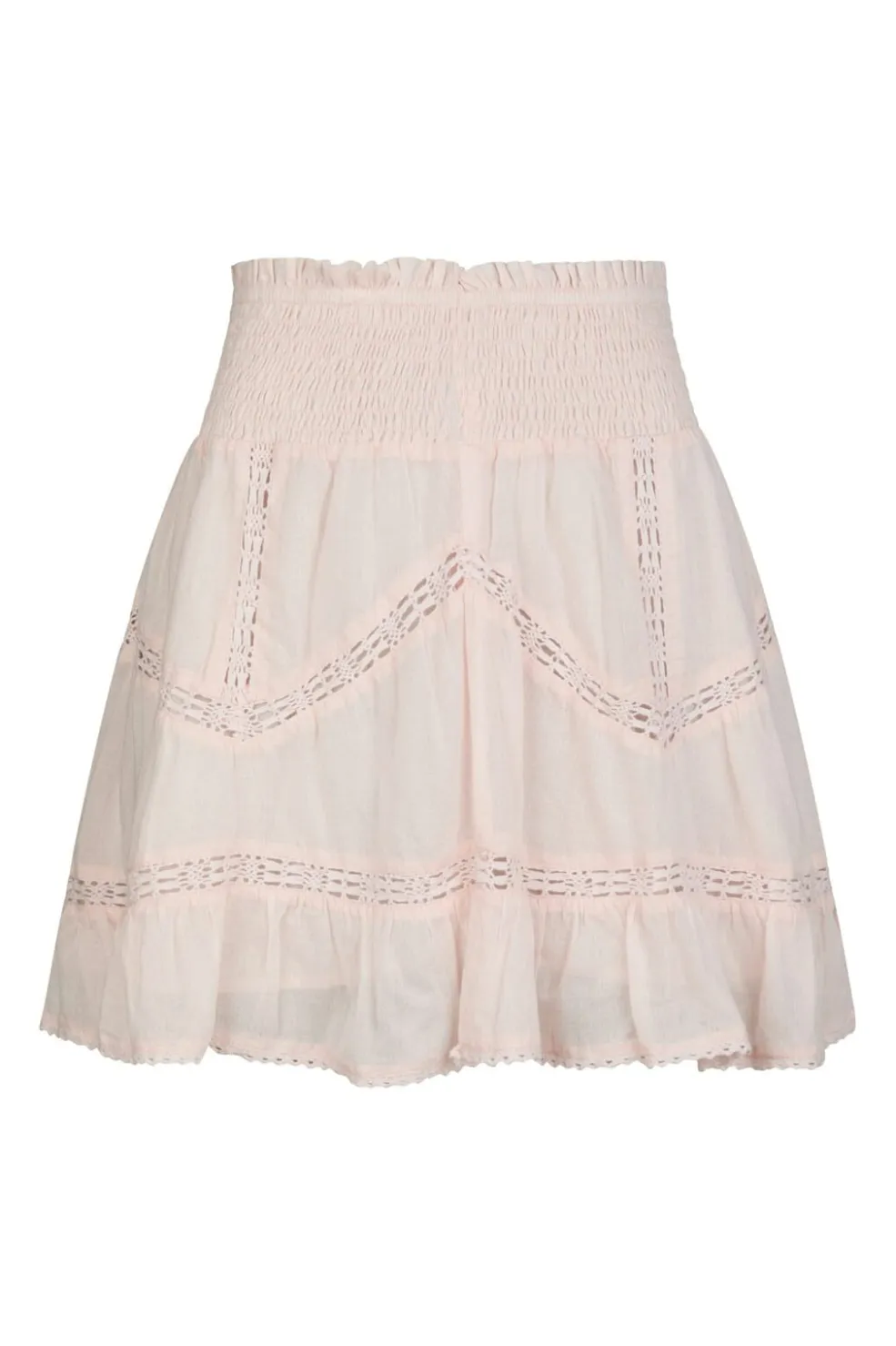 Lys pink nederdel fra Neo Noir med flæser og elastisk talje. Fremstillet i blød bomuldsvoile, der giver et let og luftigt udtryk.