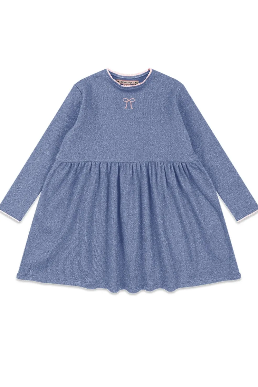 Lilla kjole fra Konges Sløjd med et ensfarvet design. Kjolen har lange ærmer, rund halsudskæring og et rynket skørt fra taljen.