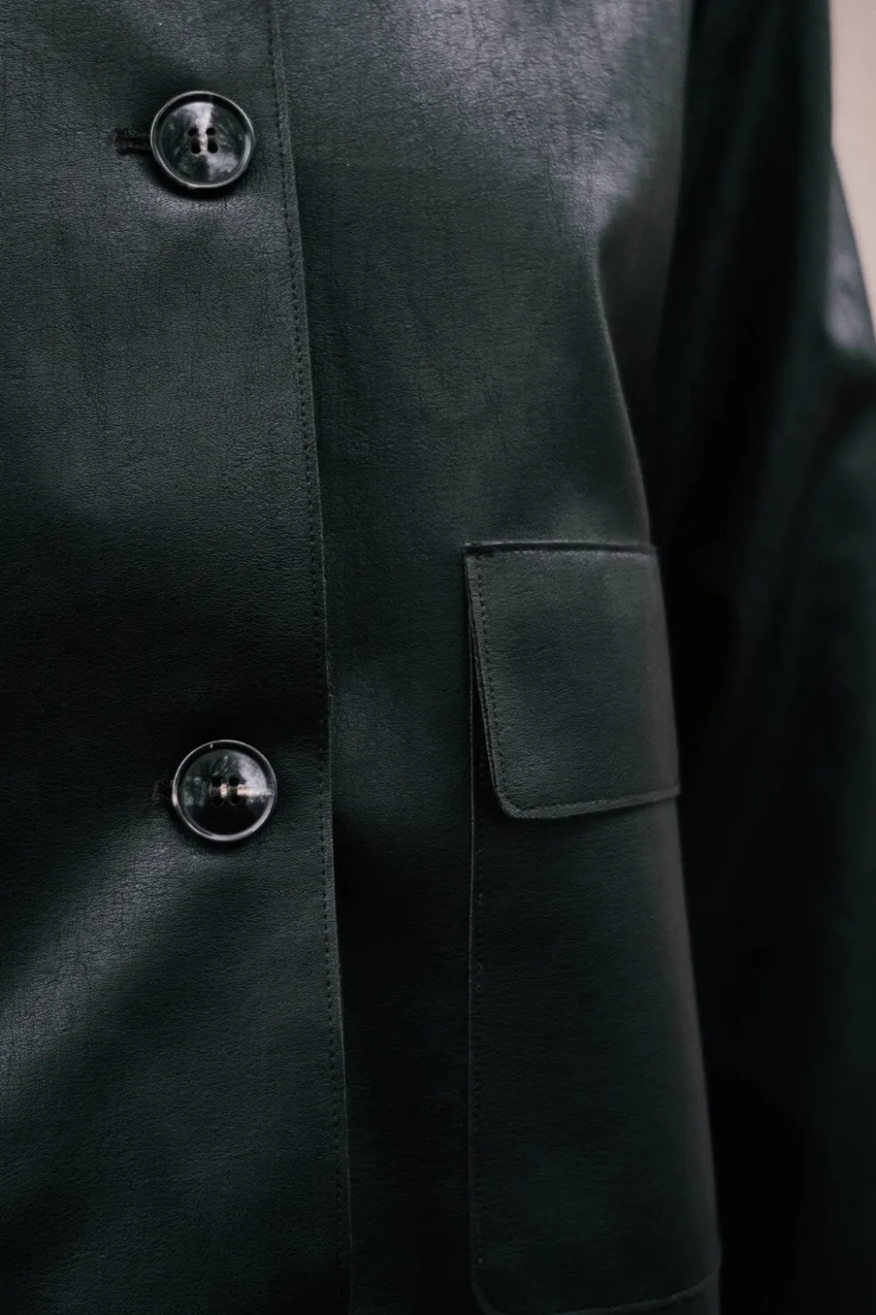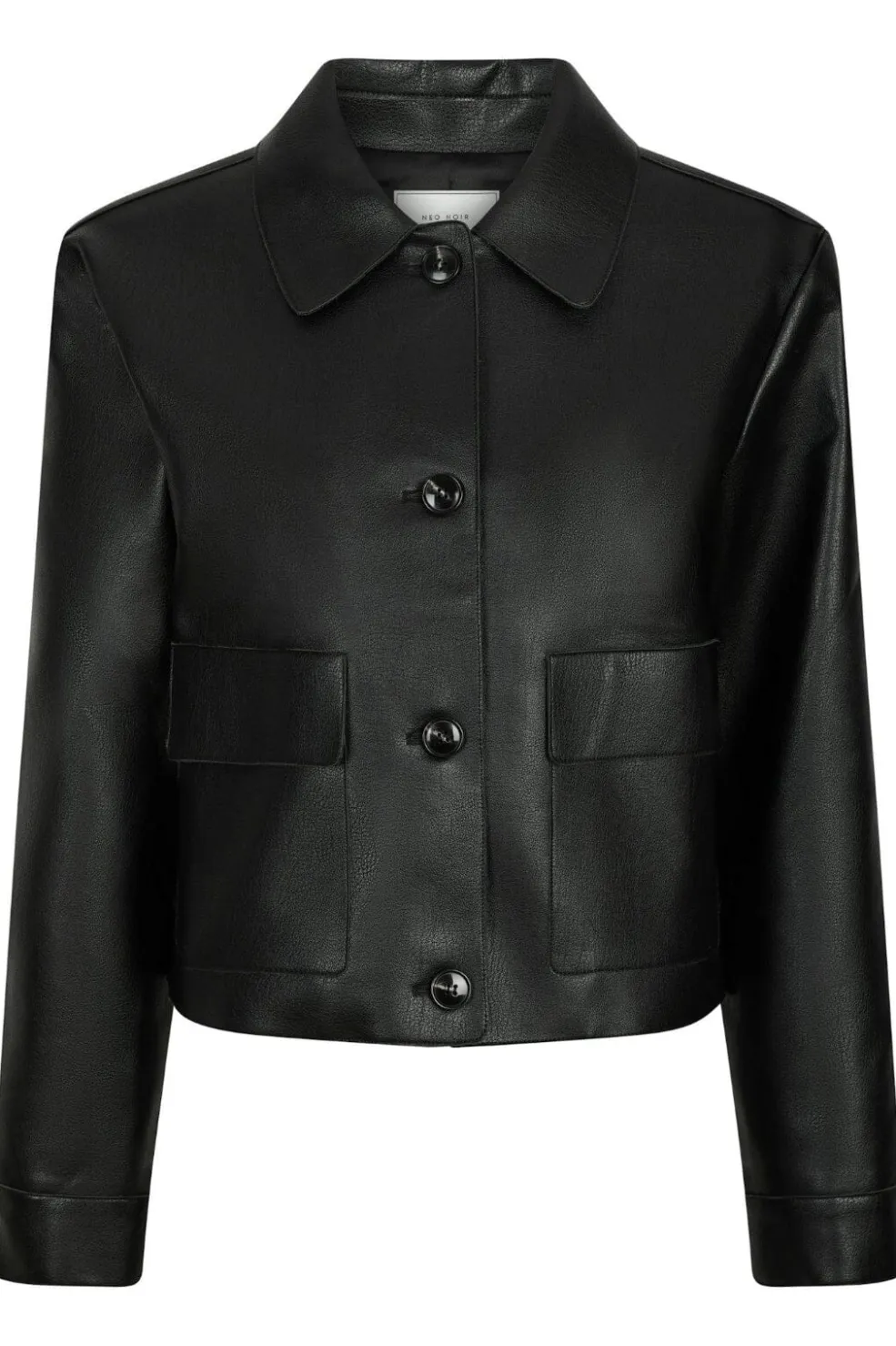 Sort jakke i imiteret læder med skjortekrave fra Neo Noir. Jakken har et cropped design med knapper på forsiden og to praktiske lommer.