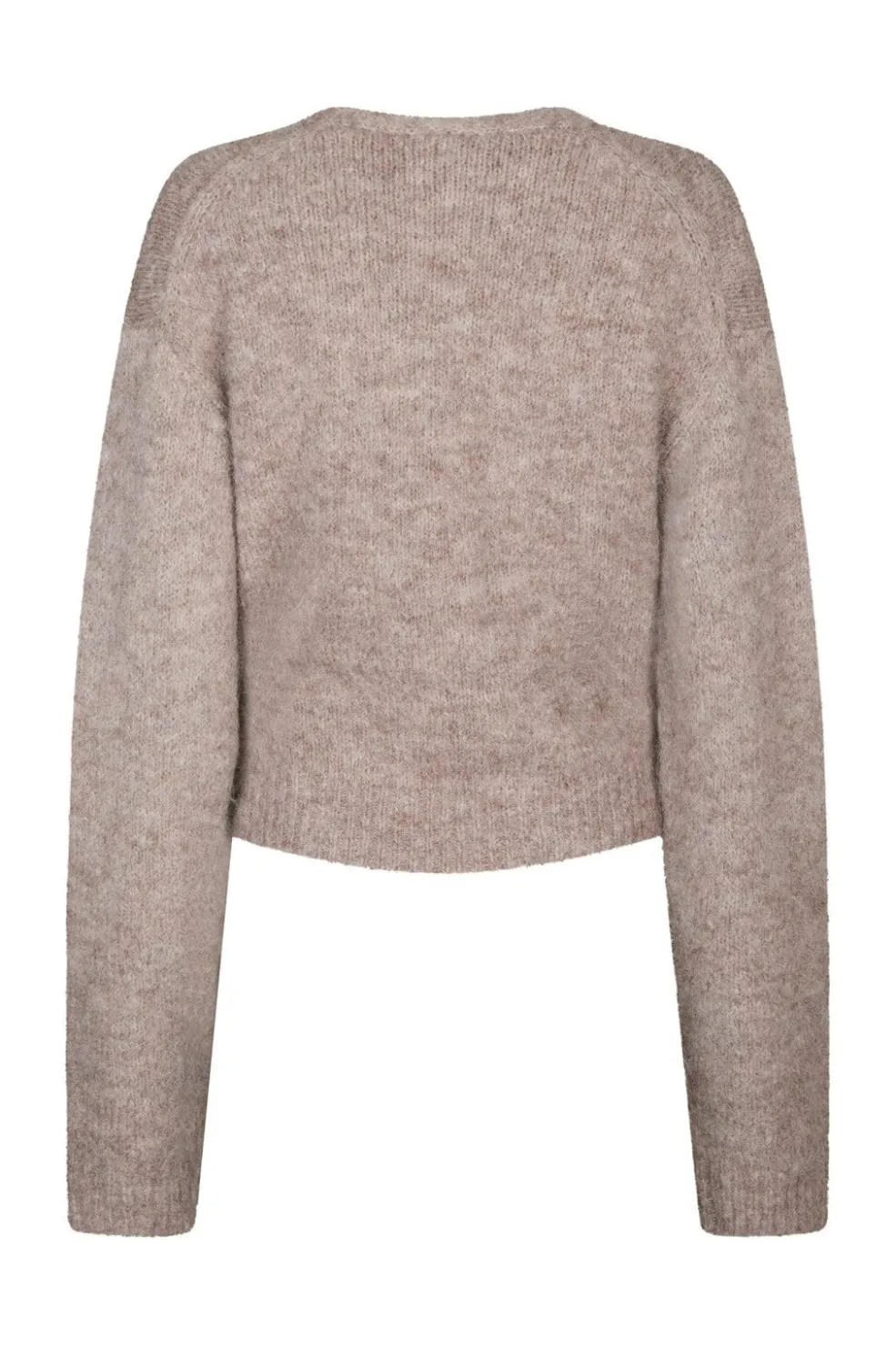 Strikket cardigan fra Neo Noir i beige melange. En blød cardigan med wrap-design og bindebånd i taljen. Den har V-hals og lange ærmer.