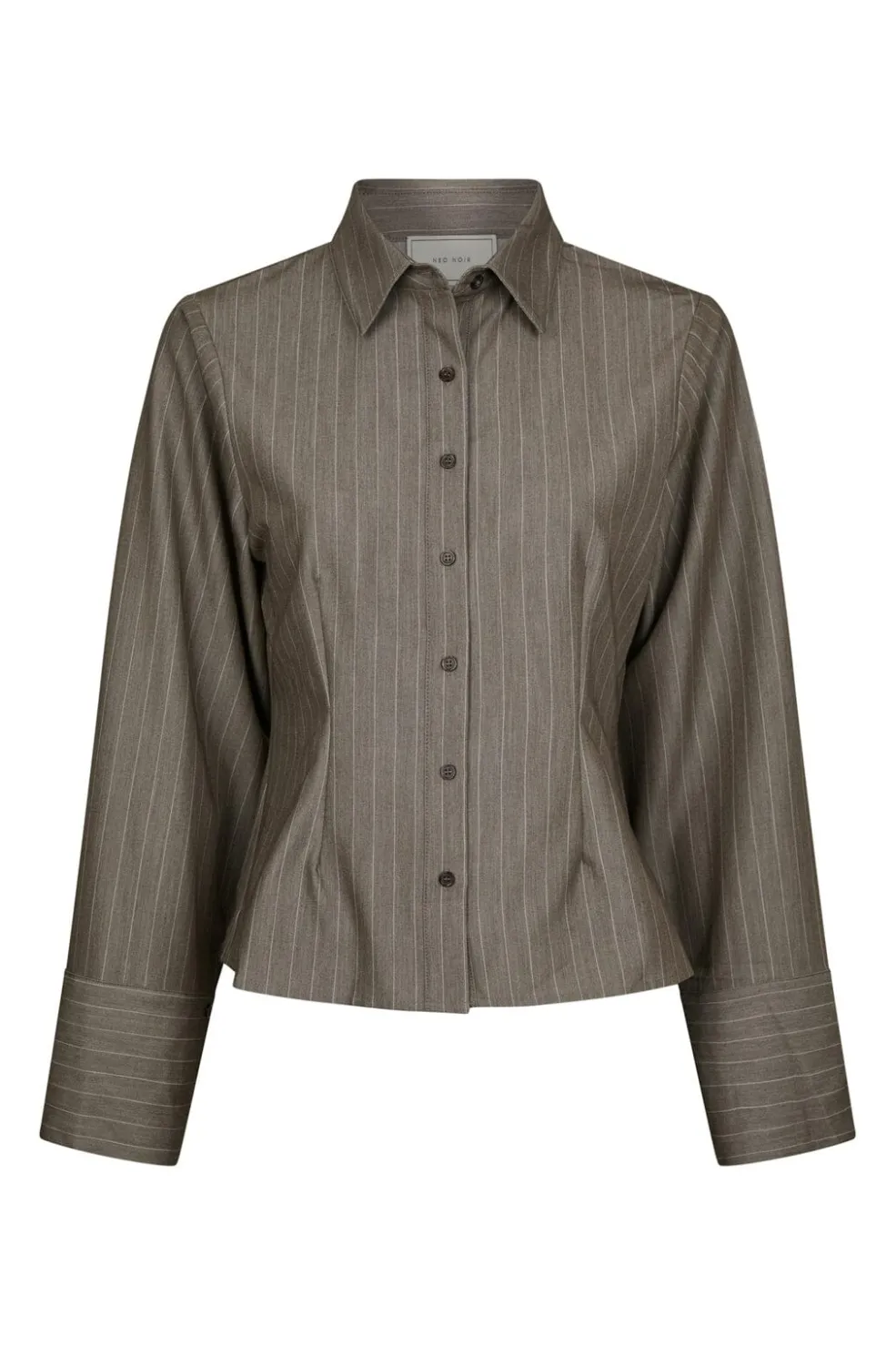 Stribet skjorte fra Neo Noir i brun nuance. Skjorten har en klassisk krave med knaplukning og brede ærmer med manchetter. Den kropsnære pasform giver et rent look.