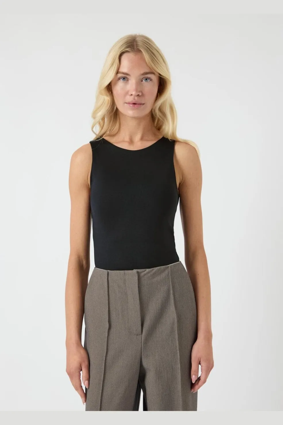 Sort body fra Y. A.S i jersey med stræk. Den har en rund hals og slim fit-pasform. Det ærmeløse design og pullover-lukningen gør den nem at tage på.