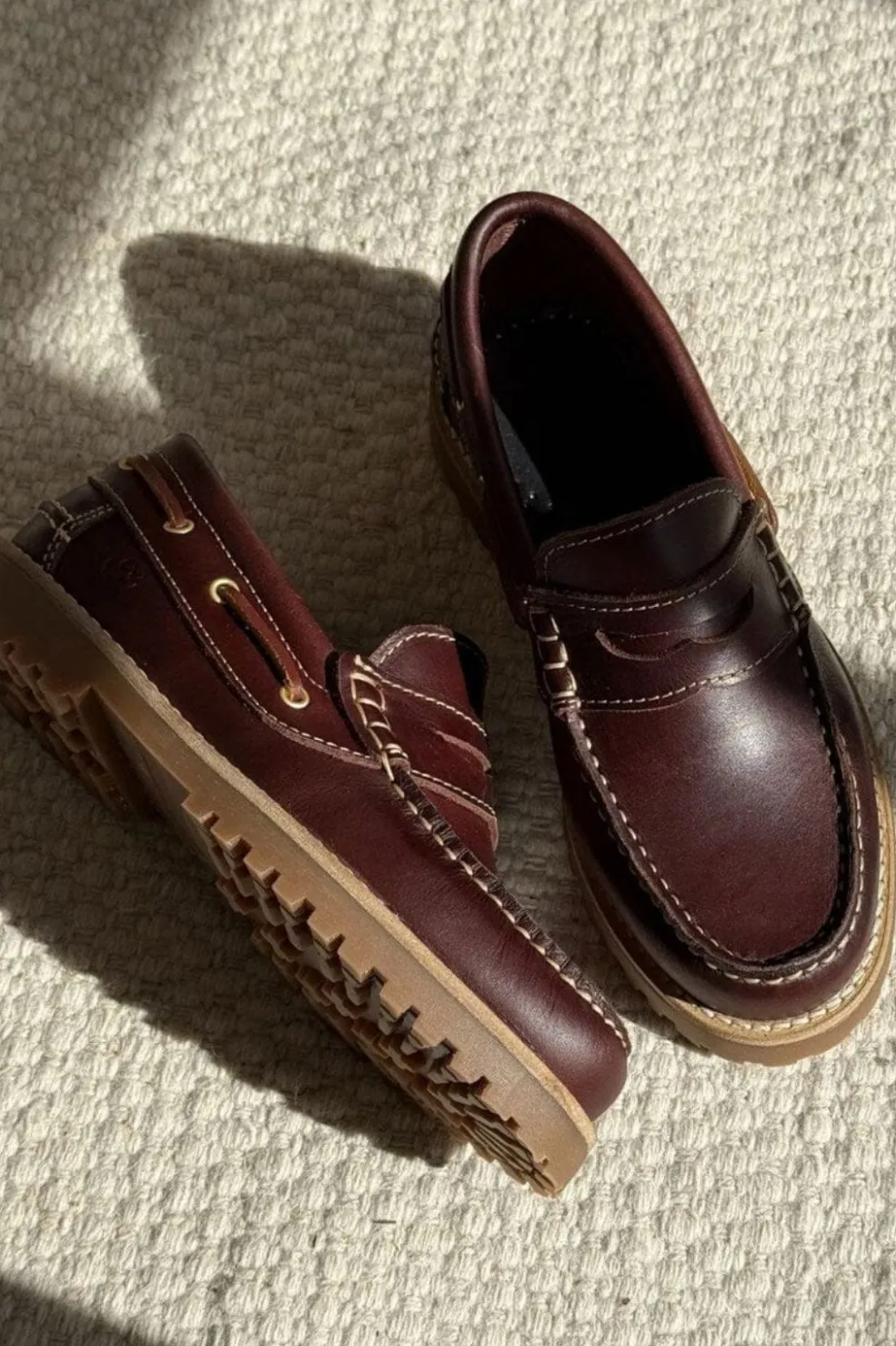 Brune lædersko fra Phenumb Copenhagen med båd-inspireret design. De synlige syninger og metaløjer giver skoen et maritimt præg. Skoen har en robust konstruktion med kraftig sål.
