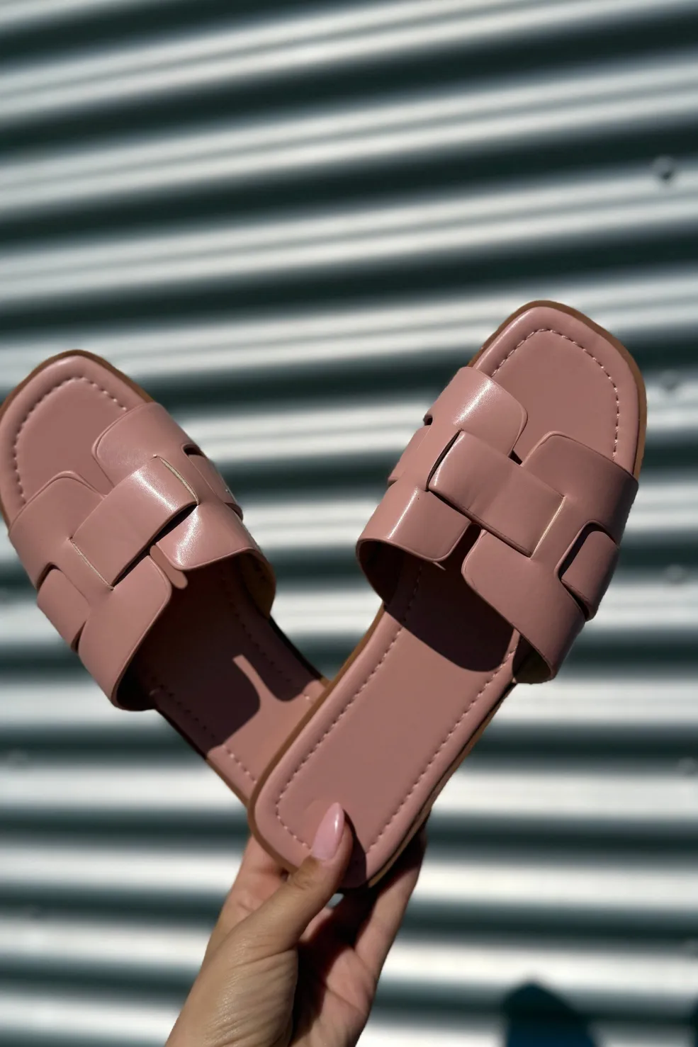 Pink sandal fra Bloom med flettede remme og firkantet tå. Sandalen har en lav hæl og et bredt remdesign, der giver god støtte til foden.