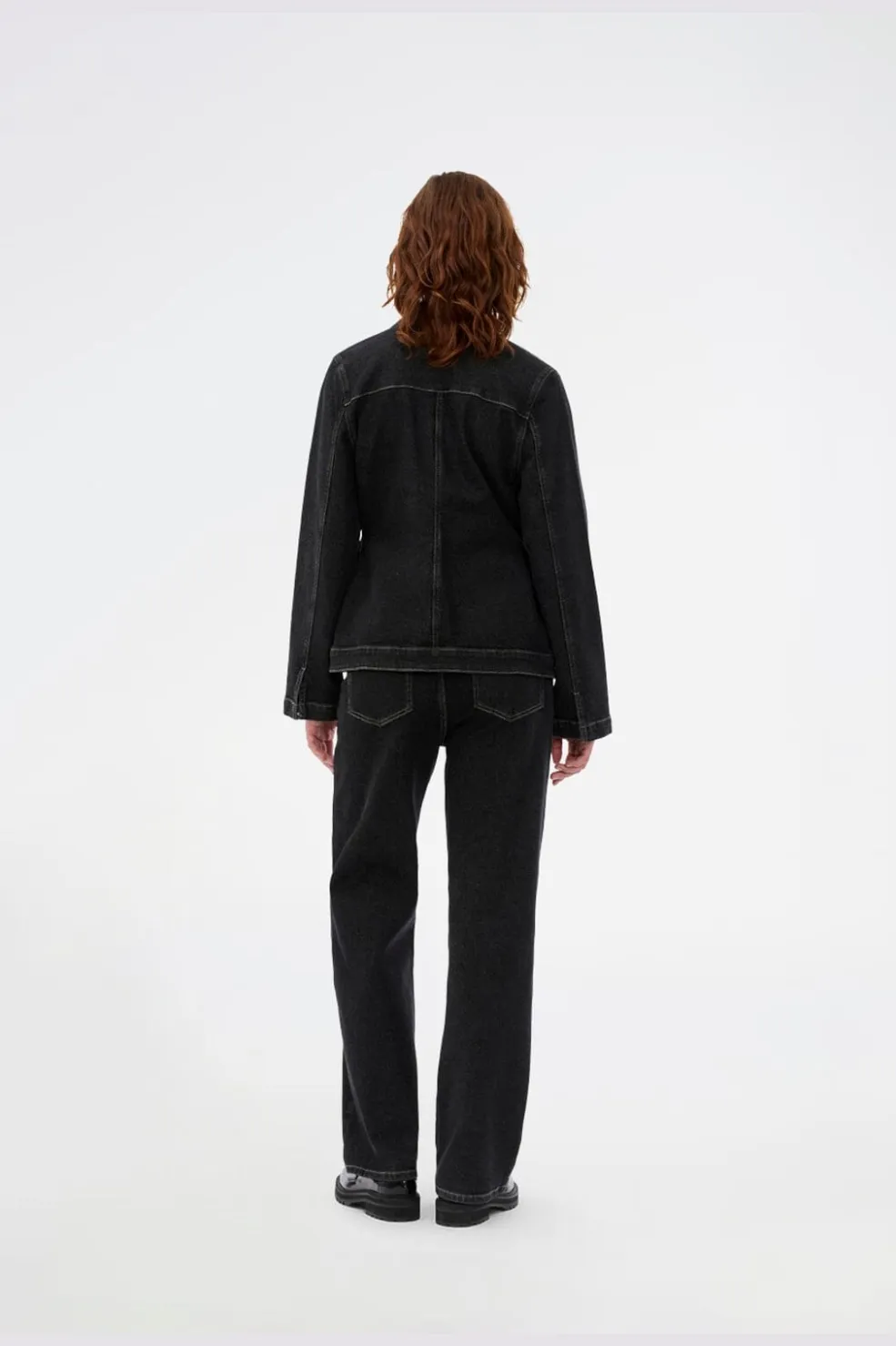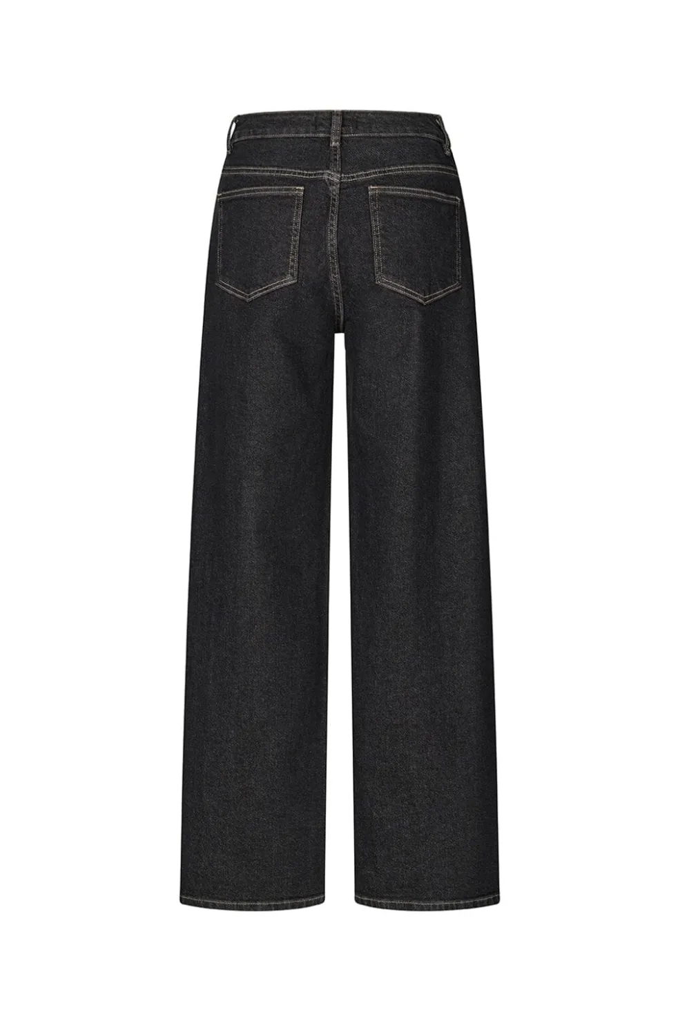 Sorte jeans fra Modström med høj talje og løs pasform. Jeansene har en enkel stil med dekorative syninger og går til anklen. De lukkes med knapper og lynlås.