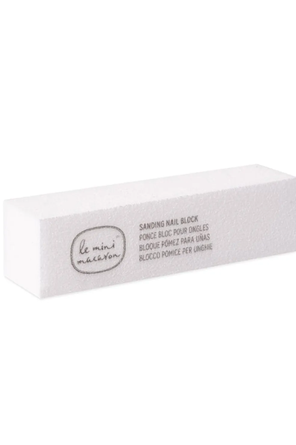 Bufferblok til neglepleje fra Le Mini Macaron. Den hvide blok fjerner effektivt ujævnheder og ridser fra neglens overflade og forbereder neglene til neglelak.