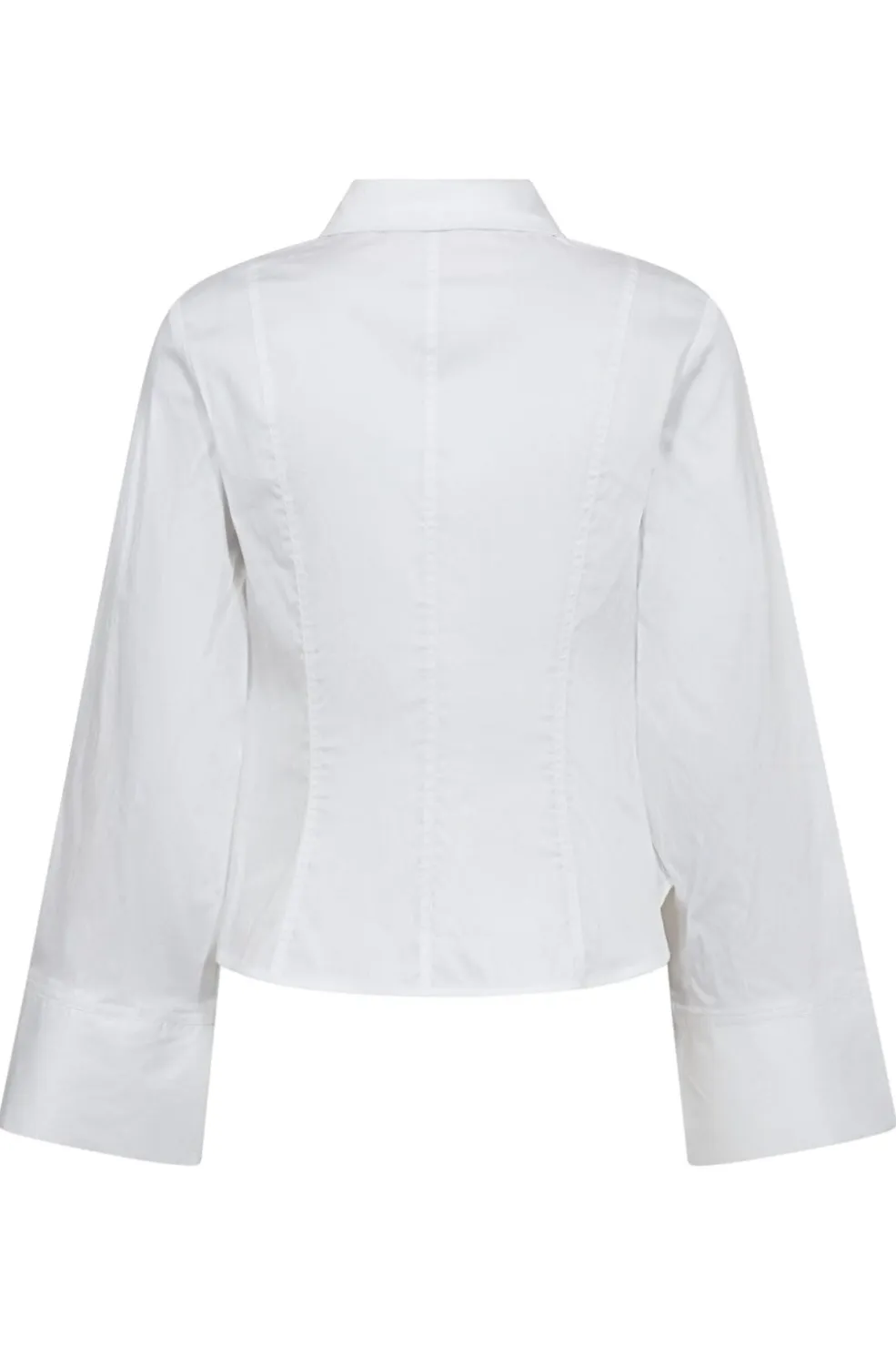 Hvid skjorte fra Co’Couture med klassisk krave og knaplukning. Skjorten har brede klokkeærmer med manchetter og et lige snit, der giver et stilfuldt udtryk.
