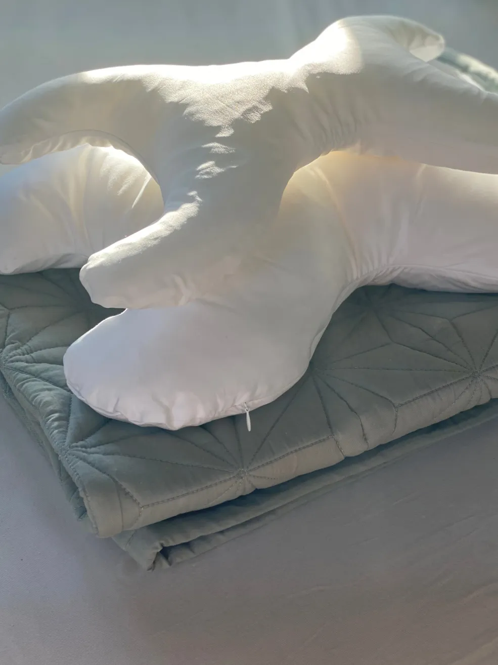 Hvidt pudebetræk fra Save My Face med X-formet design. Betrækket er fremstillet i bomuld med 500 tråde per kvadrattomme og har en særlig perlevævning.