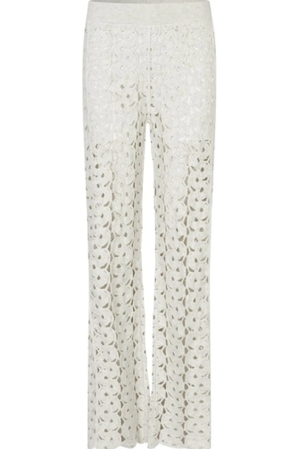 Strikbukser fra Second Female i lys grå melange. Bukserne har en behagelig pasform med elastik i taljen og er designet til både hjemmebrug og afslappede stunder.