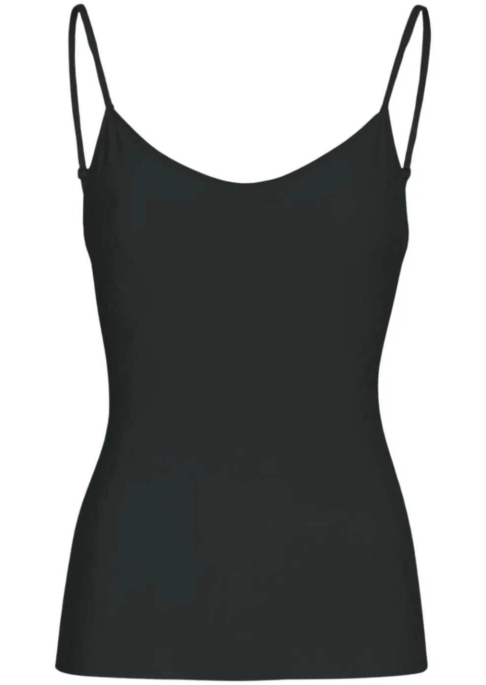 Sort shapewear-top fra Decoy med tætsiddende pasform. Toppen har en V-halsudskæring og tynde stropper, der kan justeres efter behov.