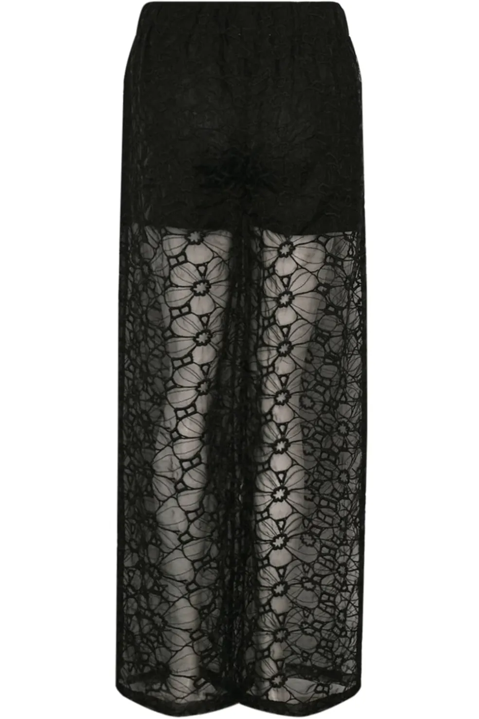 Sorte blondebukser fra Noella med gennemsigtig struktur og blomstermønster. Bukserne har en løs pasform og indershorts, designet til festlige anledninger.