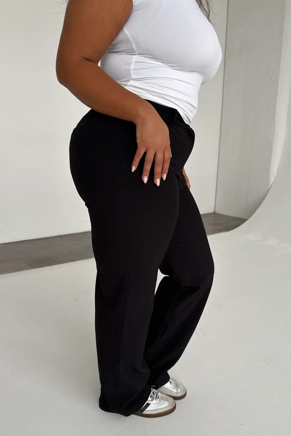 Sorte bukser fra BYIC med lige ben og normal talje. Bukserne har praktiske lommer foran og pyntelommer bagpå samt bæltestropper i taljen.