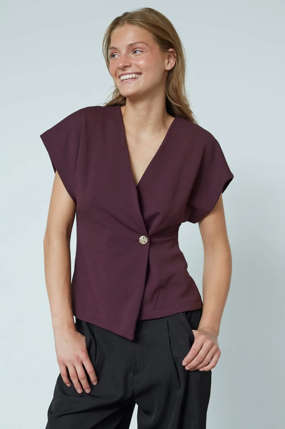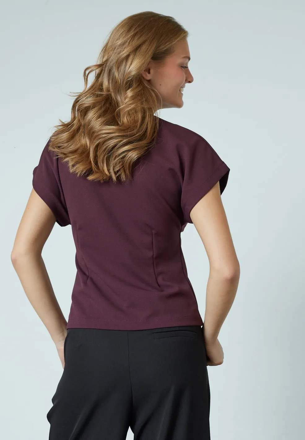 En top fra Sisters Point i farven Deep Bordeaux, som er en dyb rød nuance. Toppen har en figursyet pasform og korte ærmer.