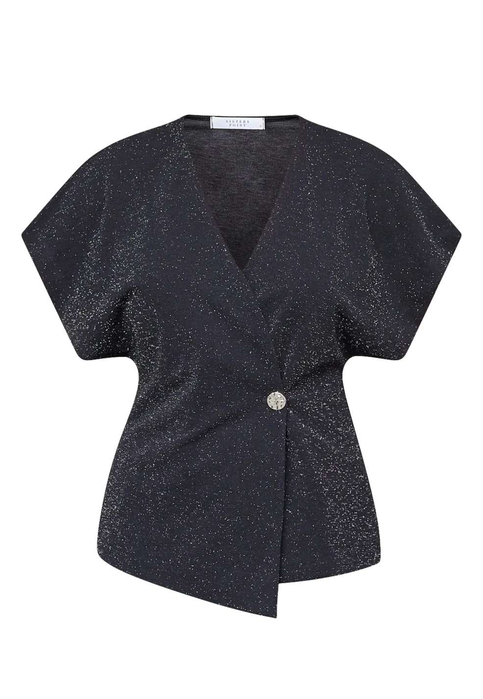 Sort top fra Sisters Point med sølvglittereffekt. Toppen har en figursyet silhuet med korte ærmer og v-udskæring.