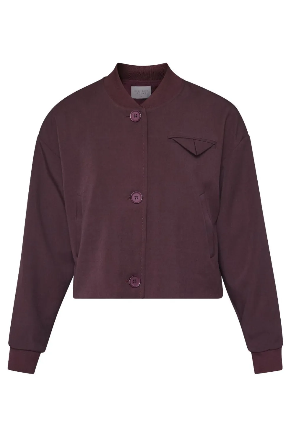 Kort jakke fra Sisters Point i mørk bordeauxfarve. Jakken har lange ærmer og en løs pasform, der giver bevægelsesfrihed til hverdagsbrug.
