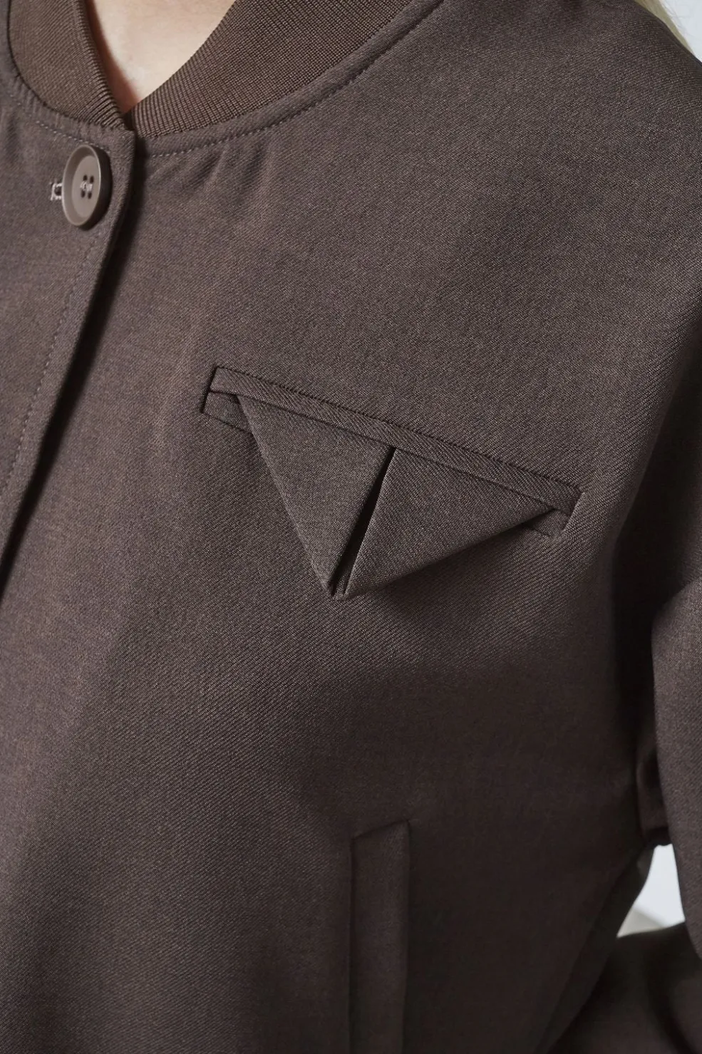 Kort jakke fra Sisters Point i en dyb chokoladebrun farve. Jakken er lavet af 96 % polyester og 4 % elastan med en løs pasform.